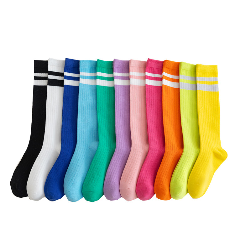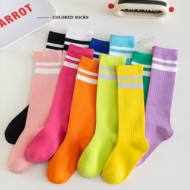 儿童长筒袜纯棉秋冬款小学生袜男童足球高筒袜彩色冬季女童长袜子