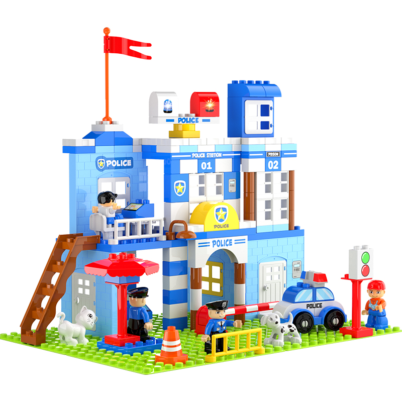 宝宝大颗粒警察局套装积木工程消防车系列5儿童益智玩具男孩3-6岁