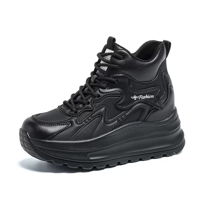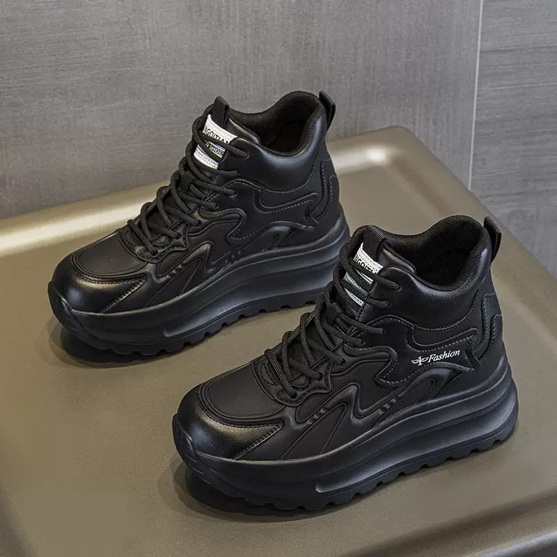 真皮厚底老爹鞋女2025新款冬季加绒内增高休闲运动高帮女鞋不累脚