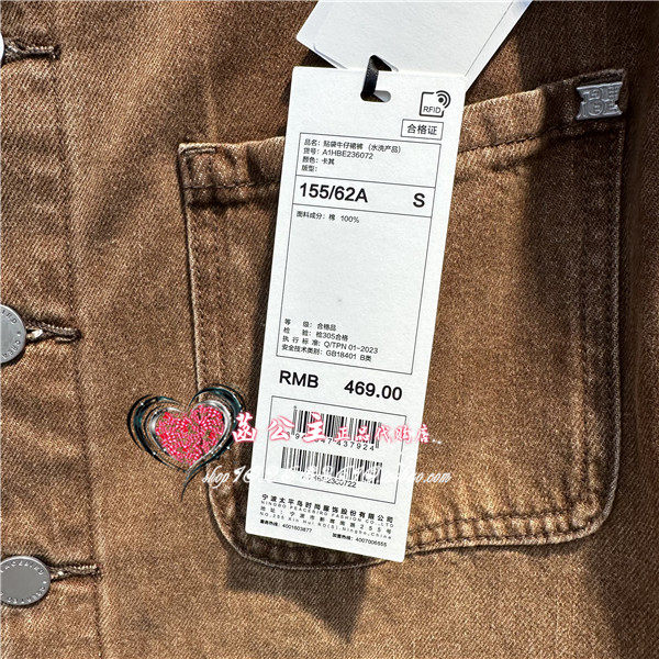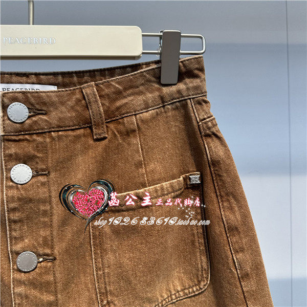A1HBE2360太平鸟女装2024夏专柜正品贴袋牛仔裙裤A1HBE236072