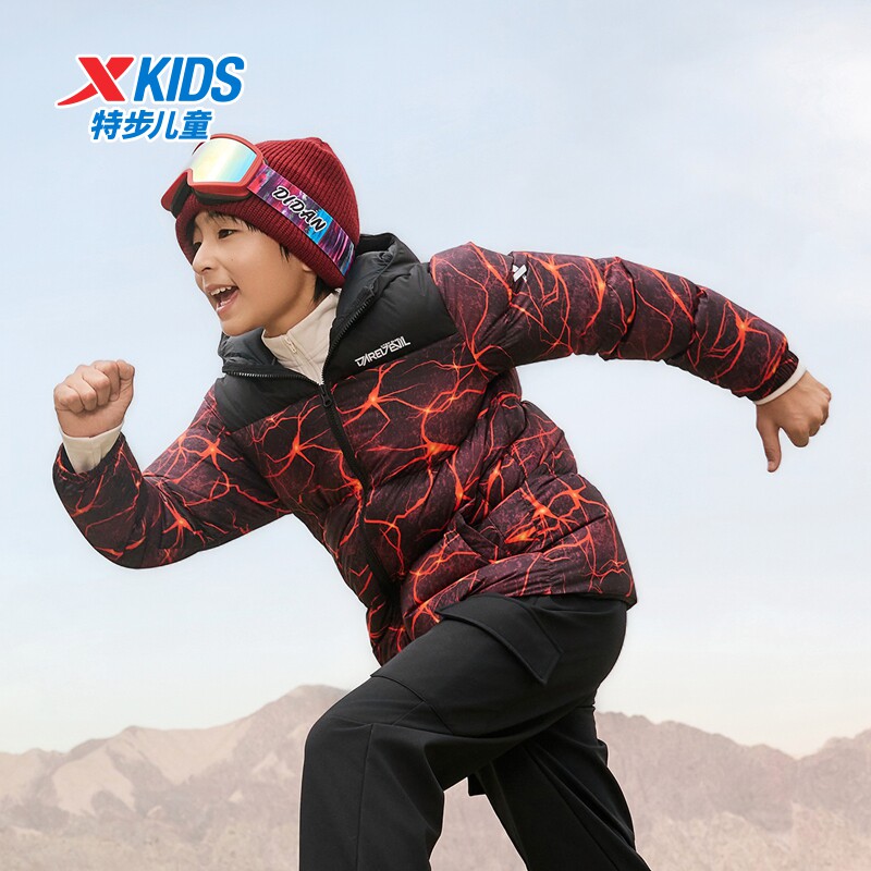 特步童装儿童保暖加厚羽绒服男童拼接外套2026秋冬新款防寒服大童