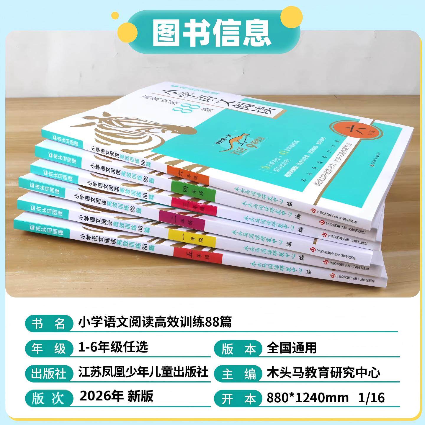 2026新版木头马小学语文阅读高效训练88篇一二三四五六年级课外阅读力测评AB版小卷阅读理解专项训练书小学生阅读与写话技巧上下册
