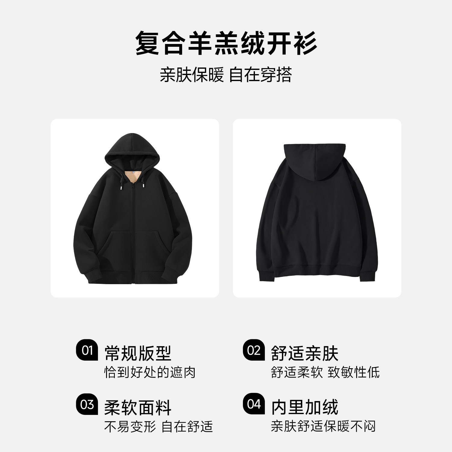 班尼路S&K系列灰色羊羔绒开衫外套女款冬季新款加绒加厚保暖卫衣N