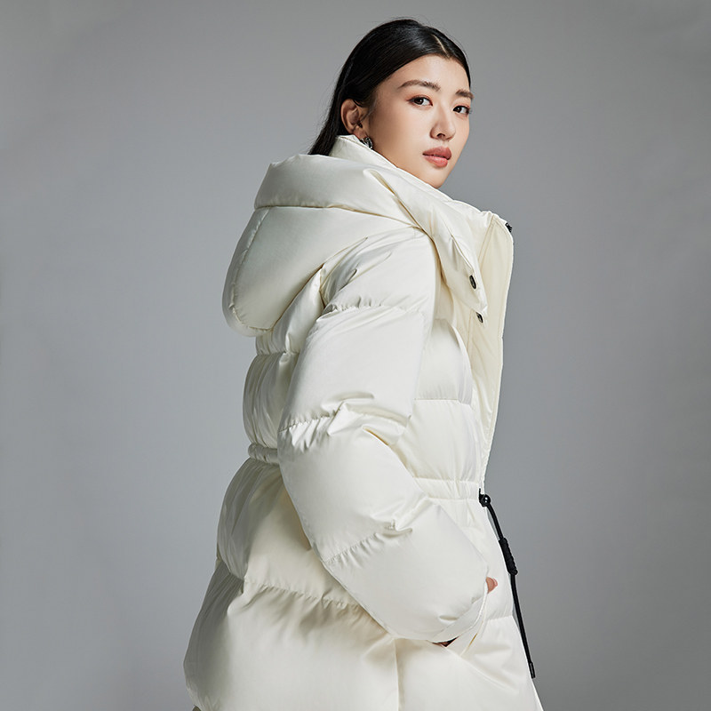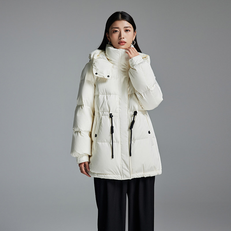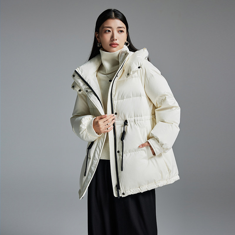 高级感羽绒服女款2025新款米色连帽小个子冬季加厚款今年流行外套