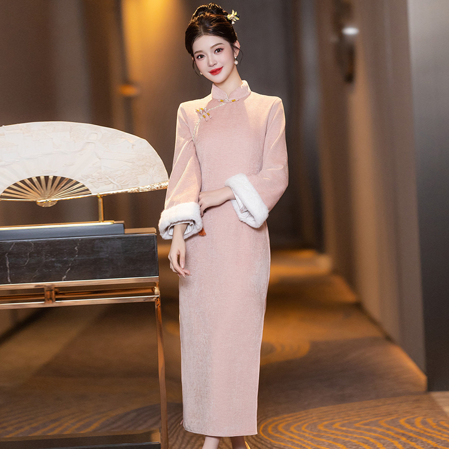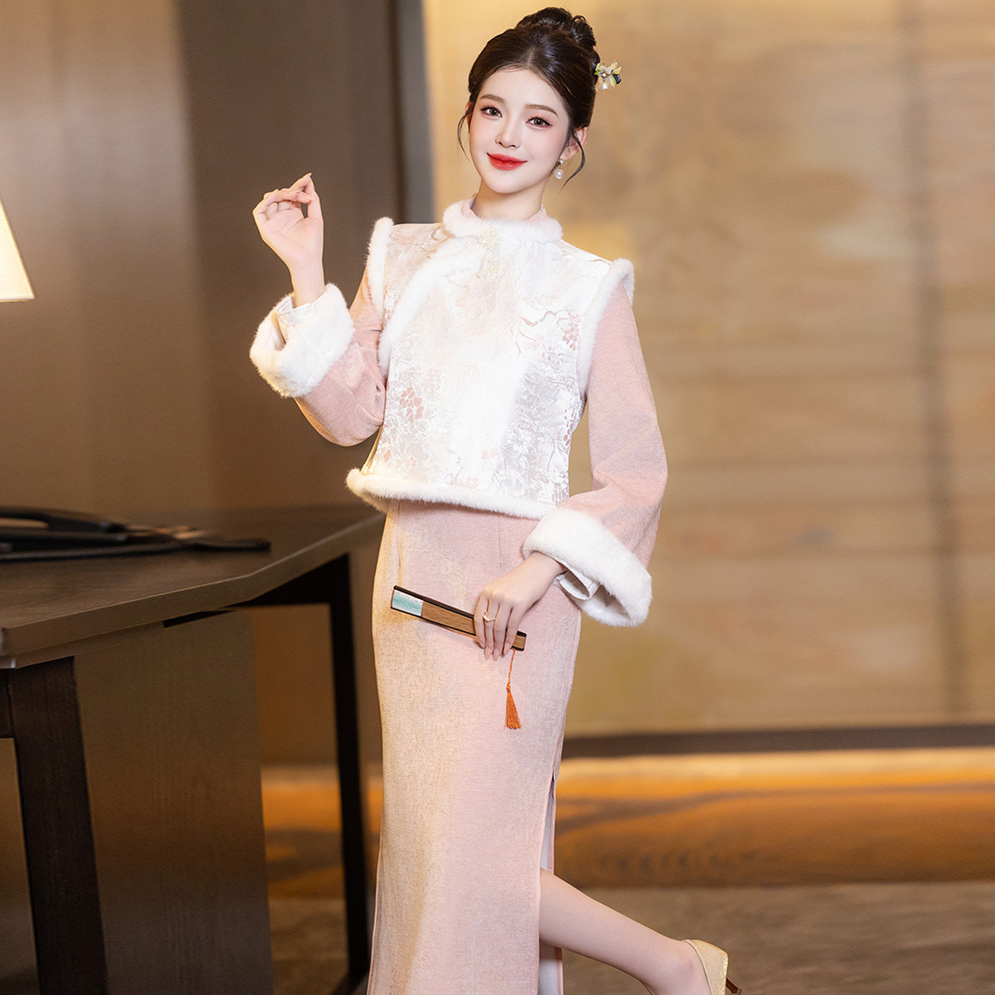新国风中式欧棉绒旗袍冬装2025新款加绒加厚年轻款高级感马甲套装