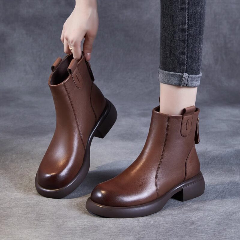 品牌断码清仓真皮马丁靴女2025新款冬季加绒短靴软底平底中筒单靴