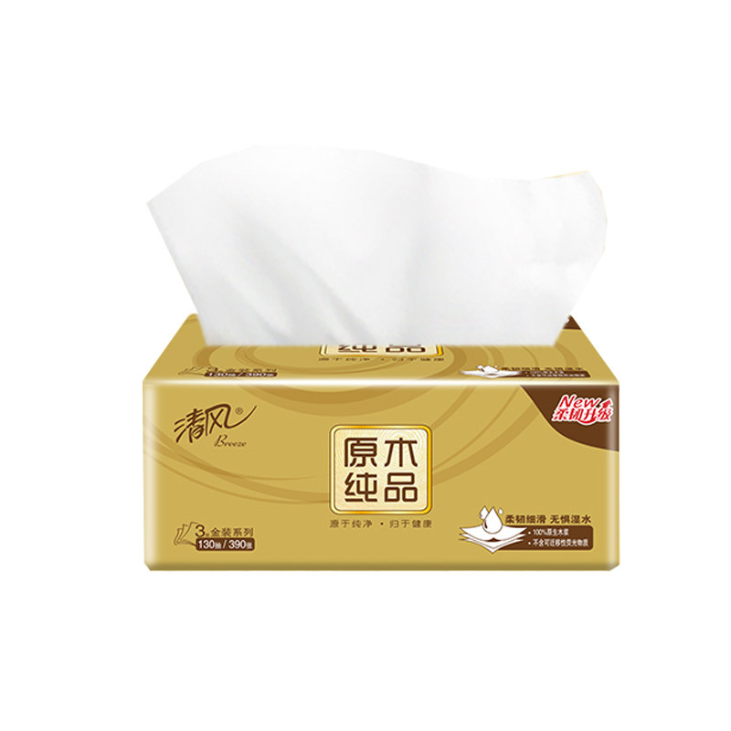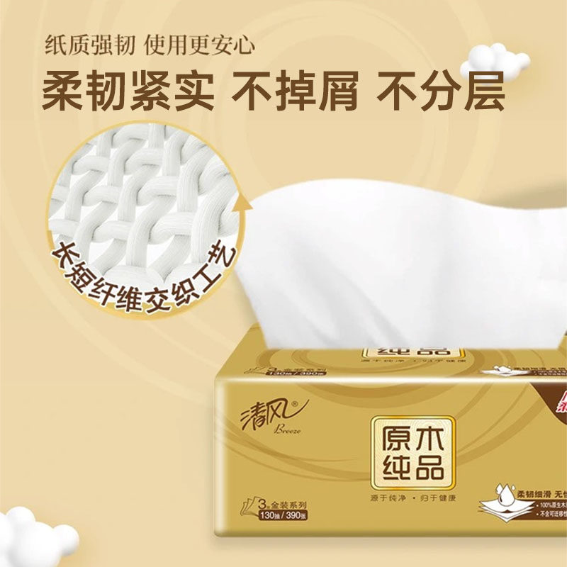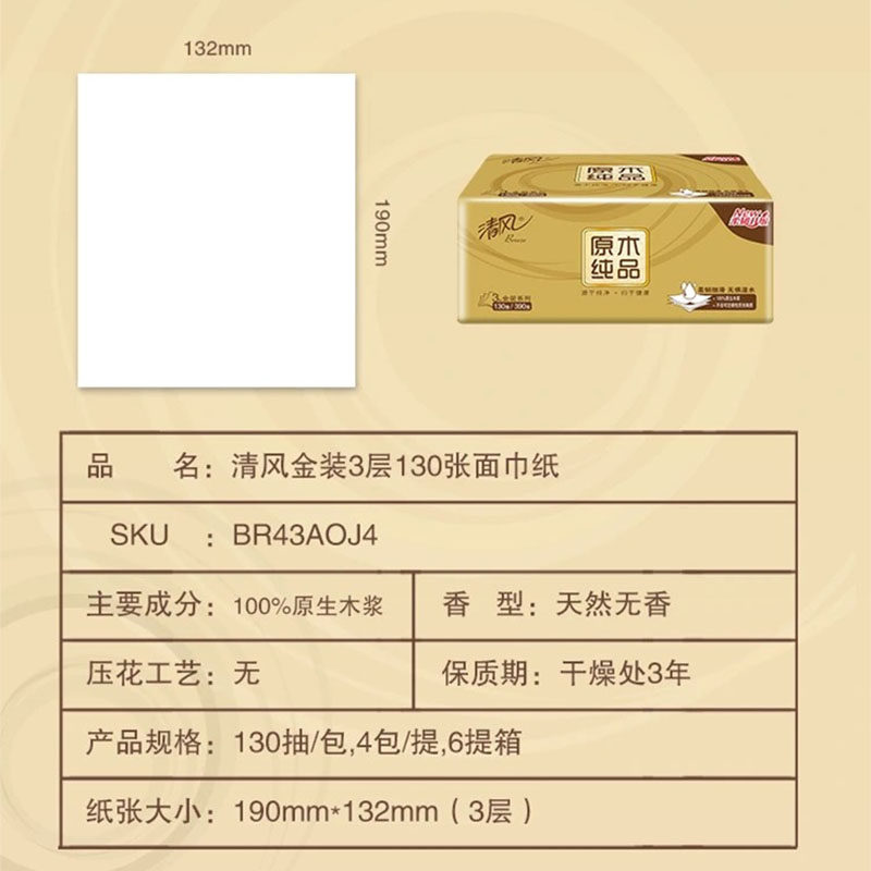 清风抽纸金装原木130抽1包家用实惠大包宿舍餐巾纸面巾纸抽纸纸巾