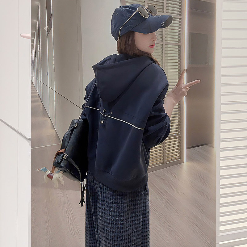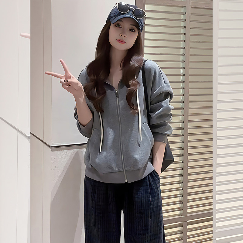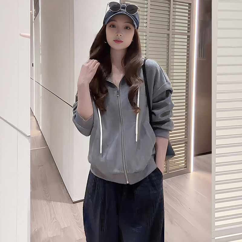 灰色连帽开衫卫衣外套女款春秋季2026新款爆款时尚洋气设计感上衣