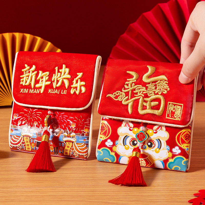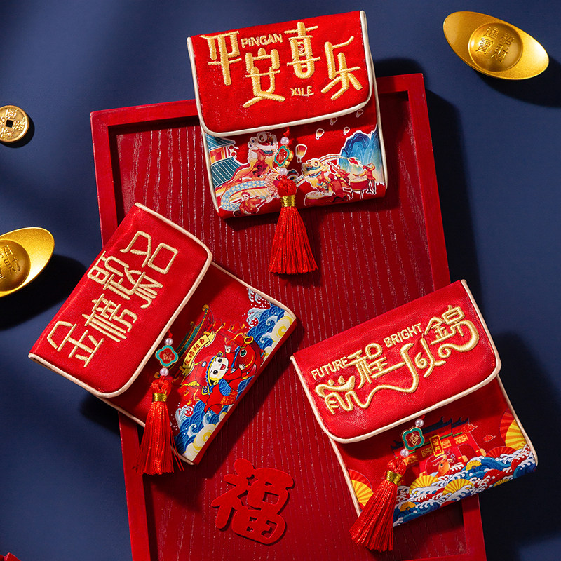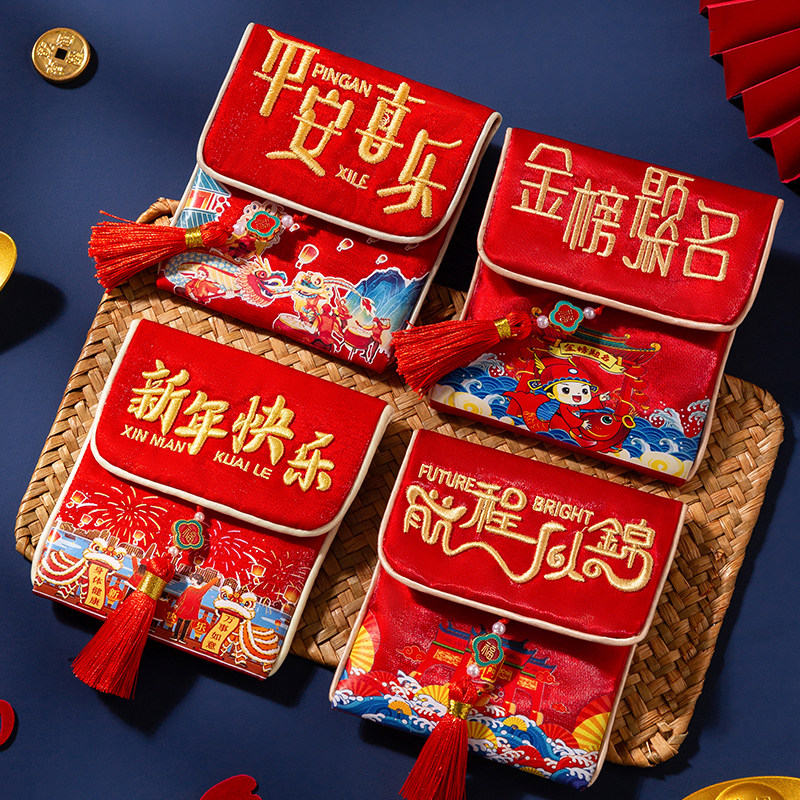 平安喜乐2026年生日周岁满月红包袋金榜题名布艺刺绣马年新年福袋