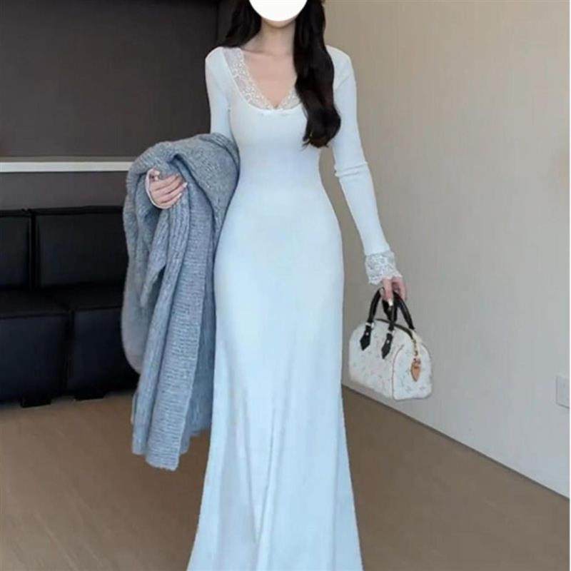 法式赫本风配大衣黑色V领针织连衣裙子女秋冬季2025新款气质绝美