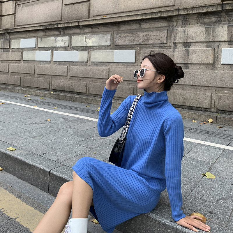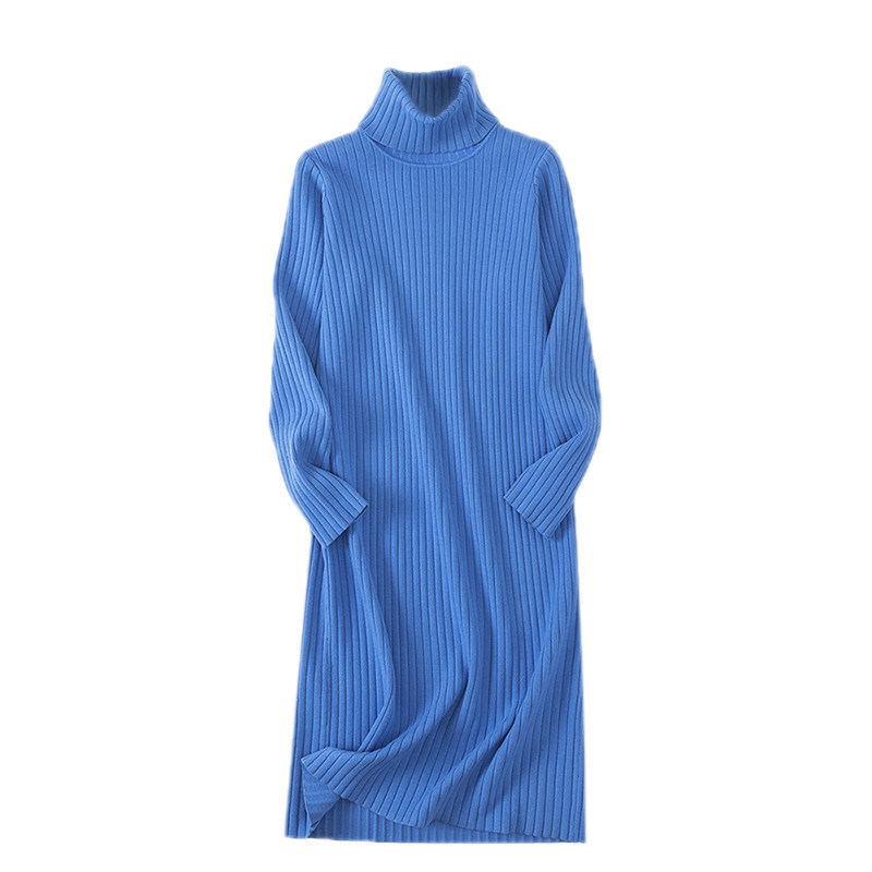 秋冬季高领针织裙连衣裙女加厚内搭打底裙配大衣中长款毛衣裙长裙