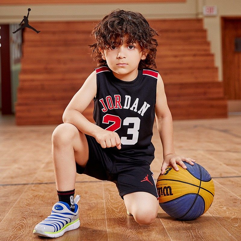 Nike Air Jordan 耐克童装男童篮球服套装儿童背心无袖T恤短裤2件