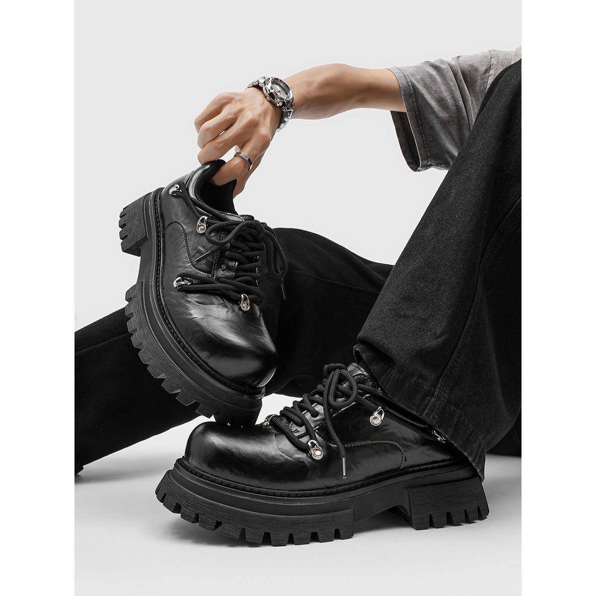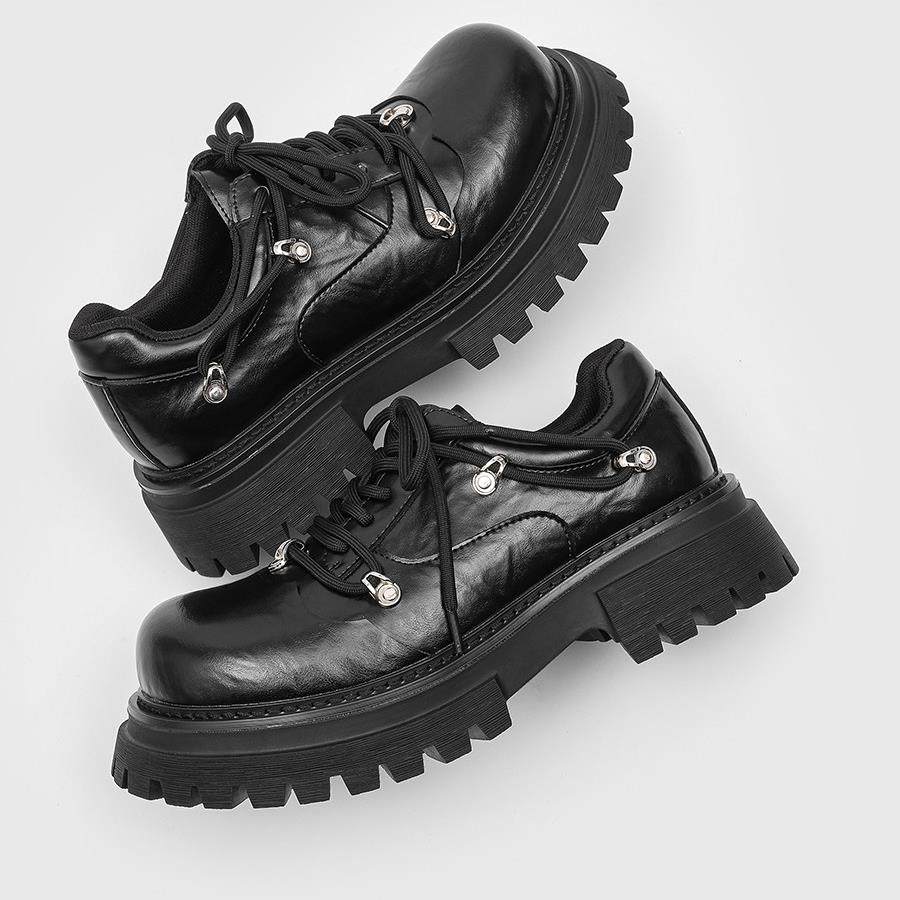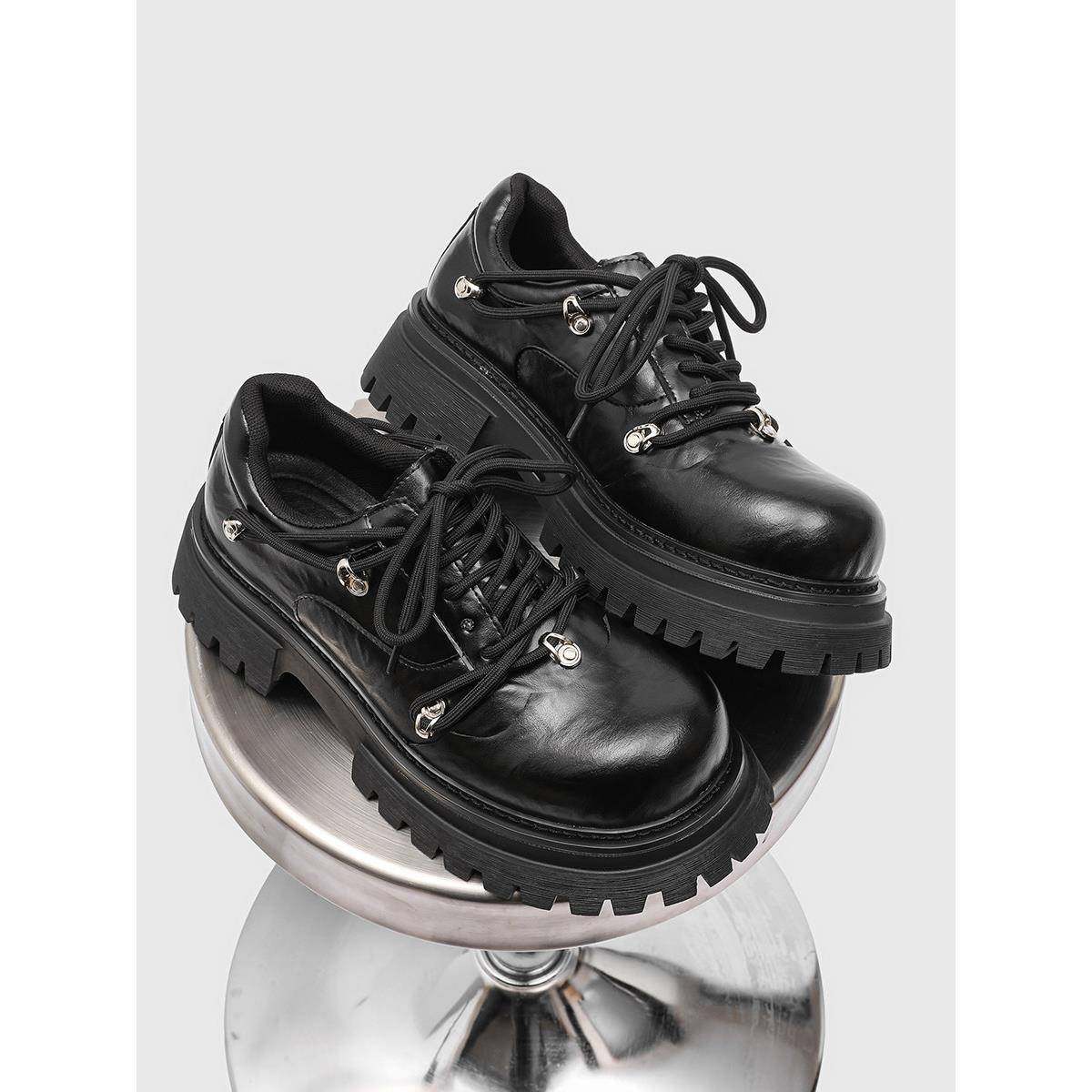 男士皮鞋年轻款休闲鞋潮流痞帅高级感大头鞋子百搭黑色厚底0120k