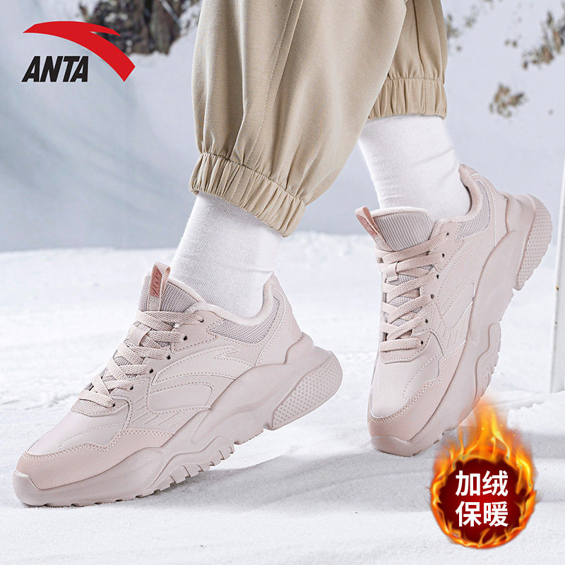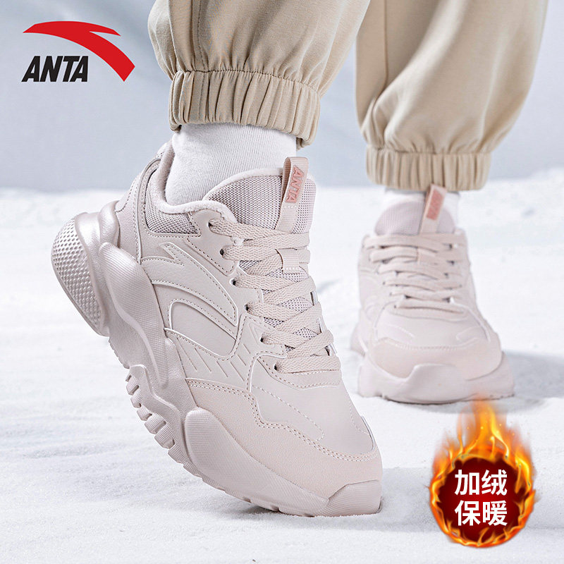 安踏女鞋冬季新款休闲运动鞋轻便老爹鞋系带跑步鞋加绒保暖棉鞋