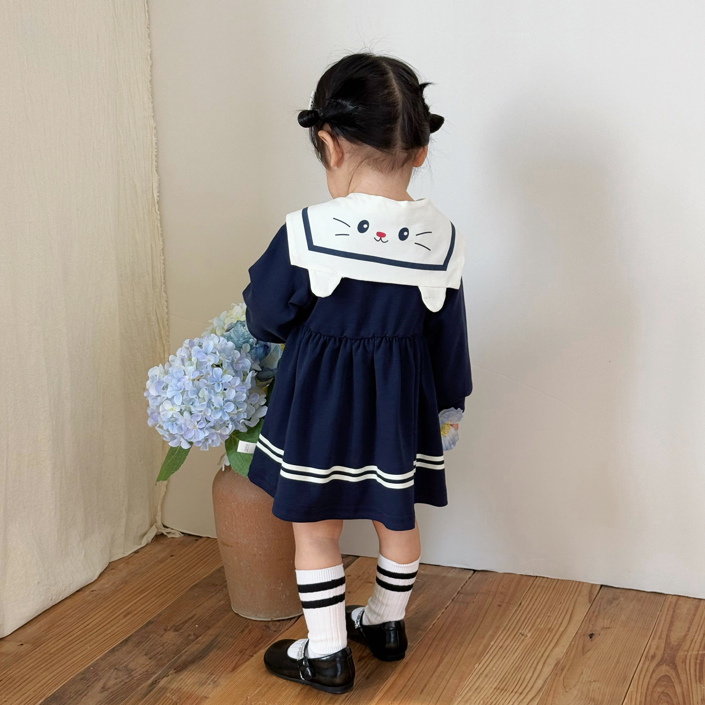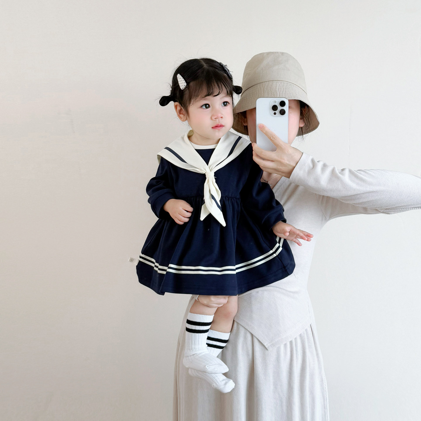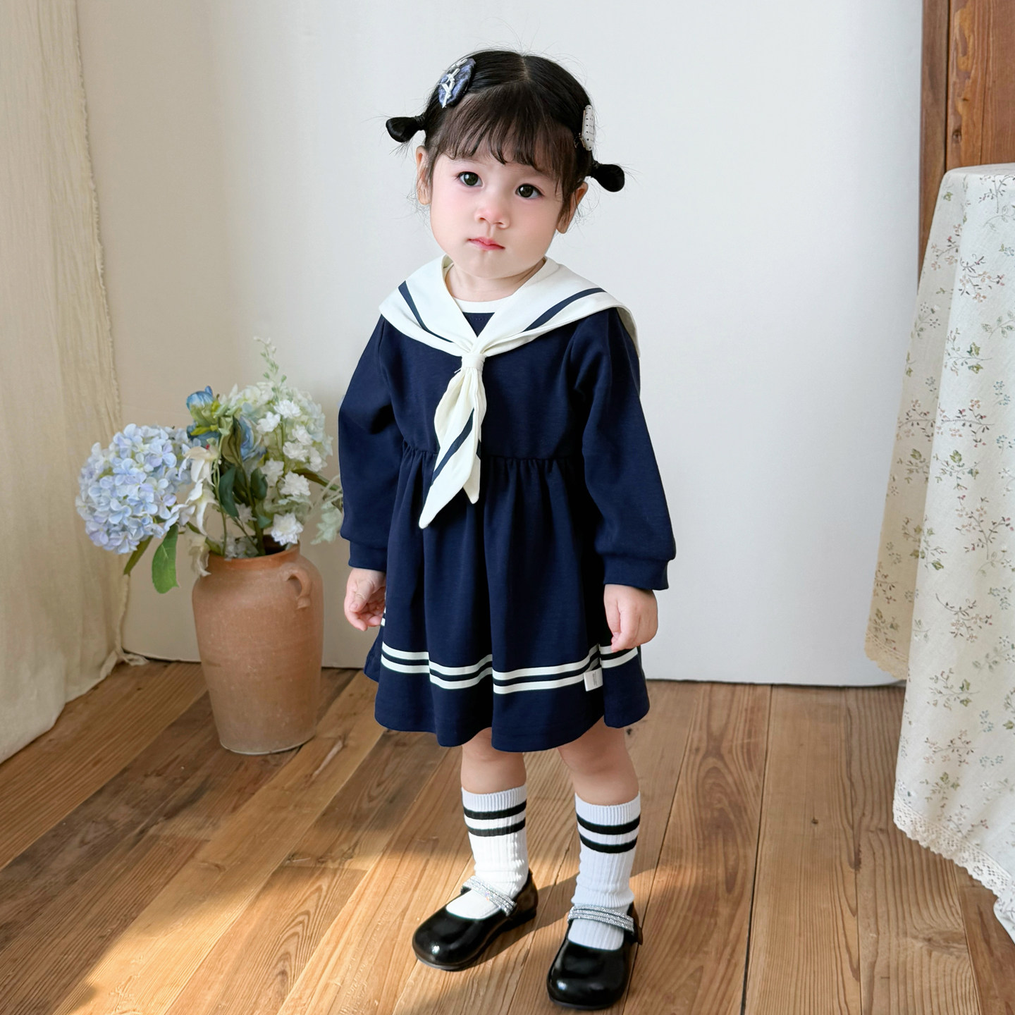 女童连衣裙秋装女宝宝海军风洋气时髦长袖薄款公主裙小童春秋裙子