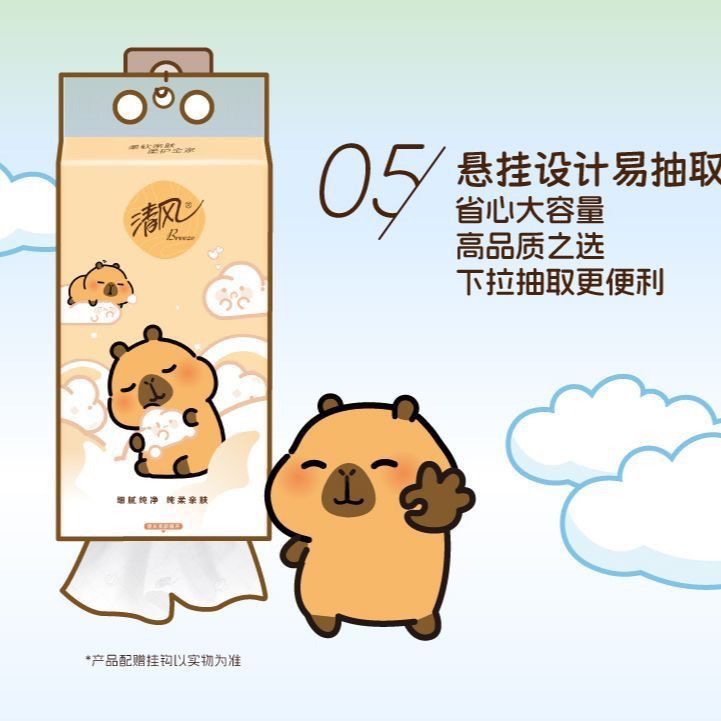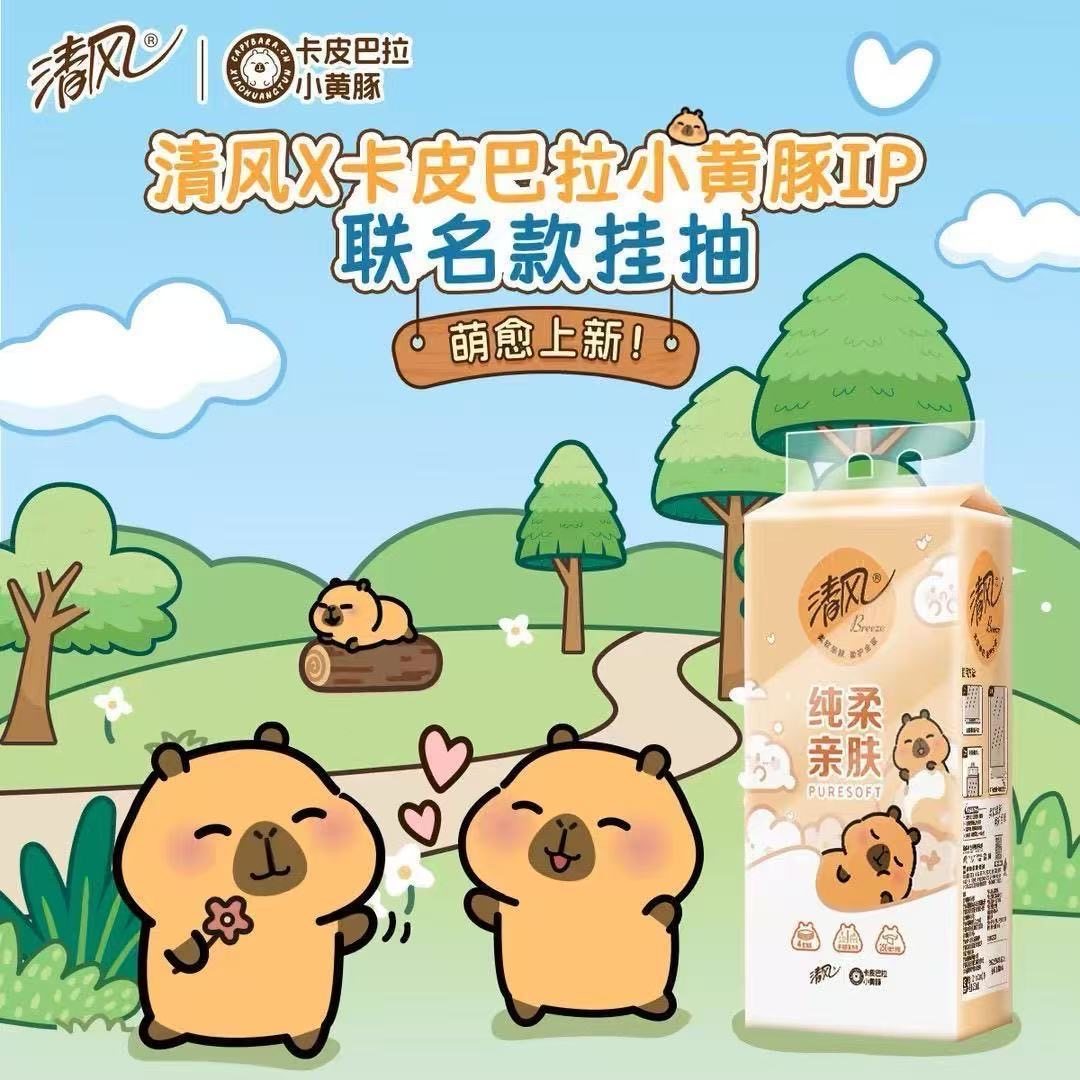 清风抽纸250抽悬挂式挂抽纸巾卡皮巴拉联名款整箱餐巾纸卫生纸抽