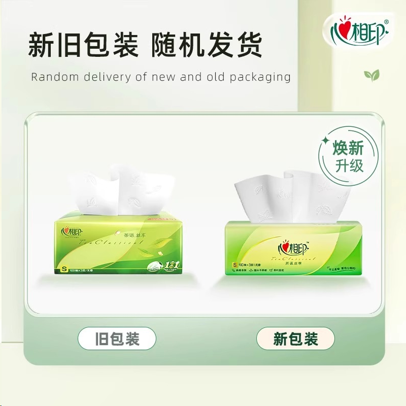 心相印茶语丝享抽纸茶叶压花100抽柔厚亲肤家庭用纸面巾纸通用