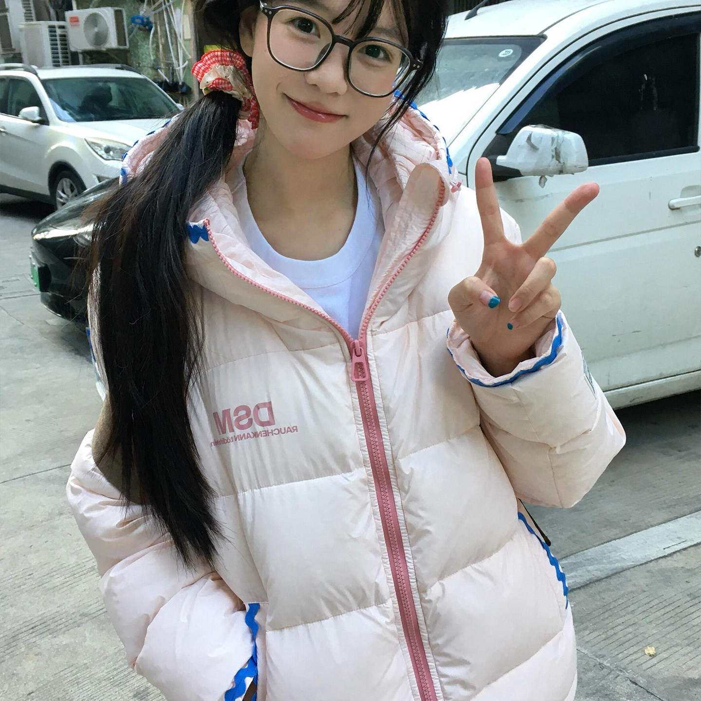 学院风连帽羽绒服女大童冬季初中高中学生保暖百搭粉色面包服外套