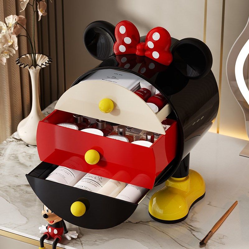 米奇抽屉化妆台化妆刷口红收纳盒创意摆件桌面化妆箱戒指首饰盒