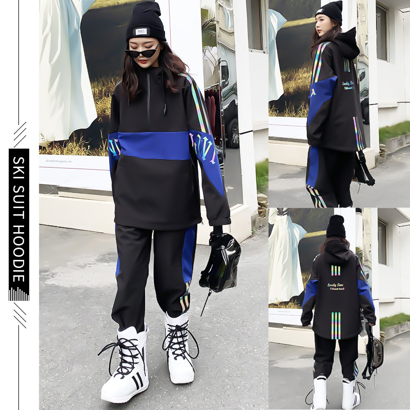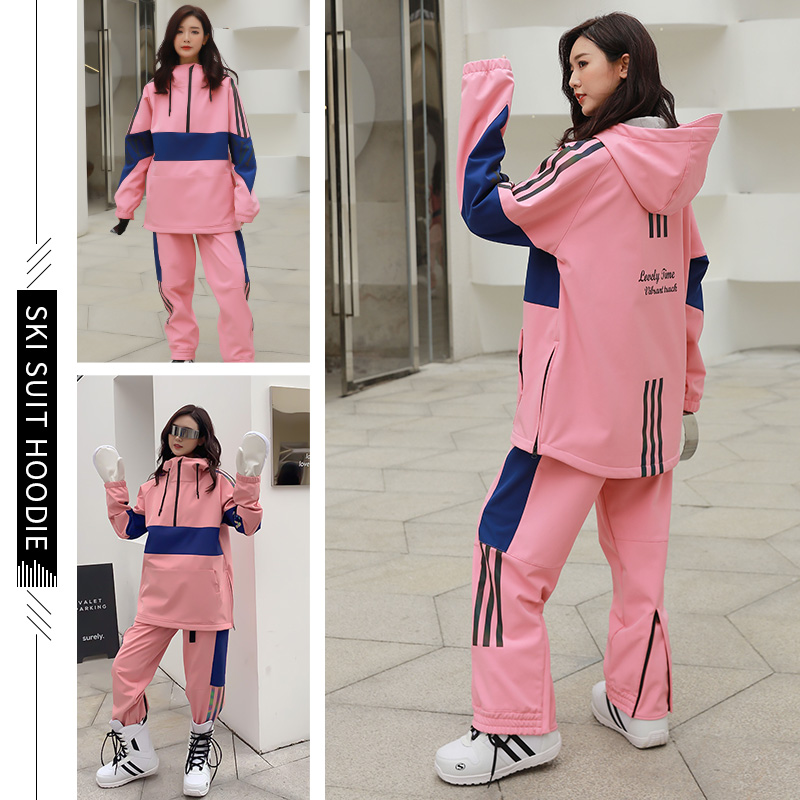 LTVT冬季单板双板男女款滑雪服卫衣滑雪帽衫套装防水加厚纯色雪服