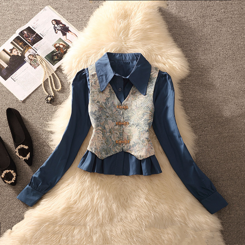 2026春秋冬新款新中式国风盘扣扎染马甲内搭衬衣胖MM大码两件套装