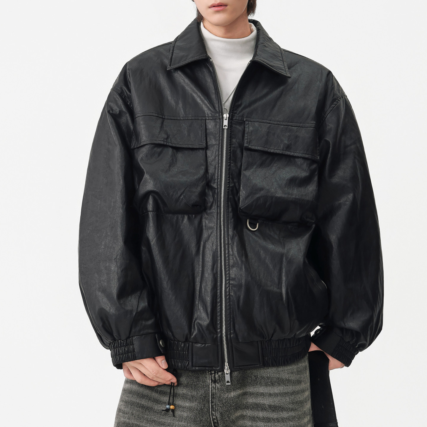 男士冬装羽绒外套皮衣羽绒服男款冬季高级感2025新款保暖厚机车服