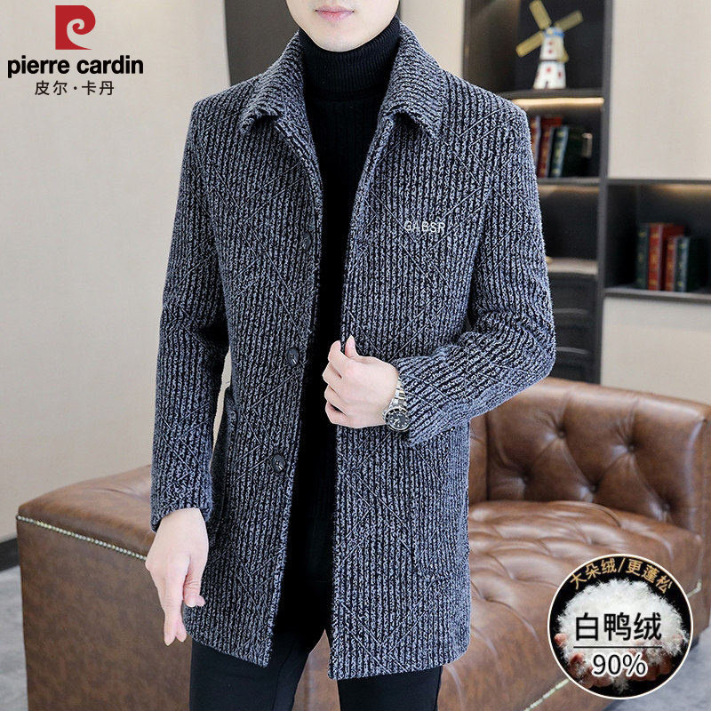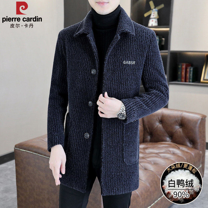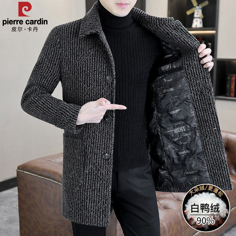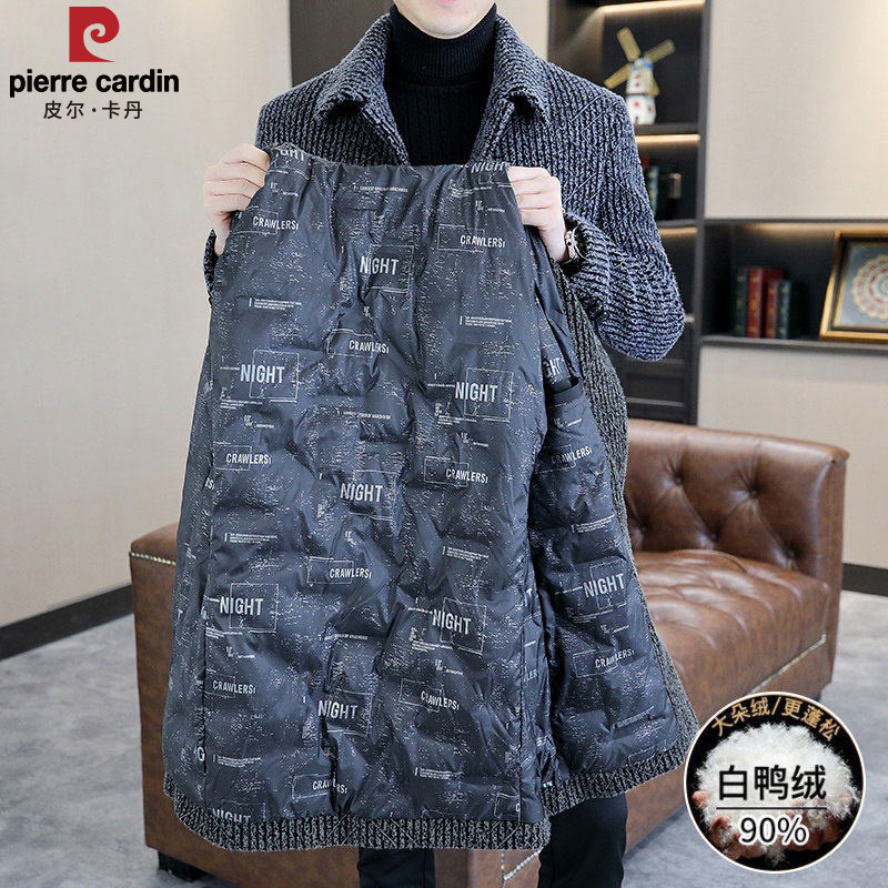 皮尔卡丹羽绒服男款商务休闲翻领高级感中长款防寒服爸爸外套冬装