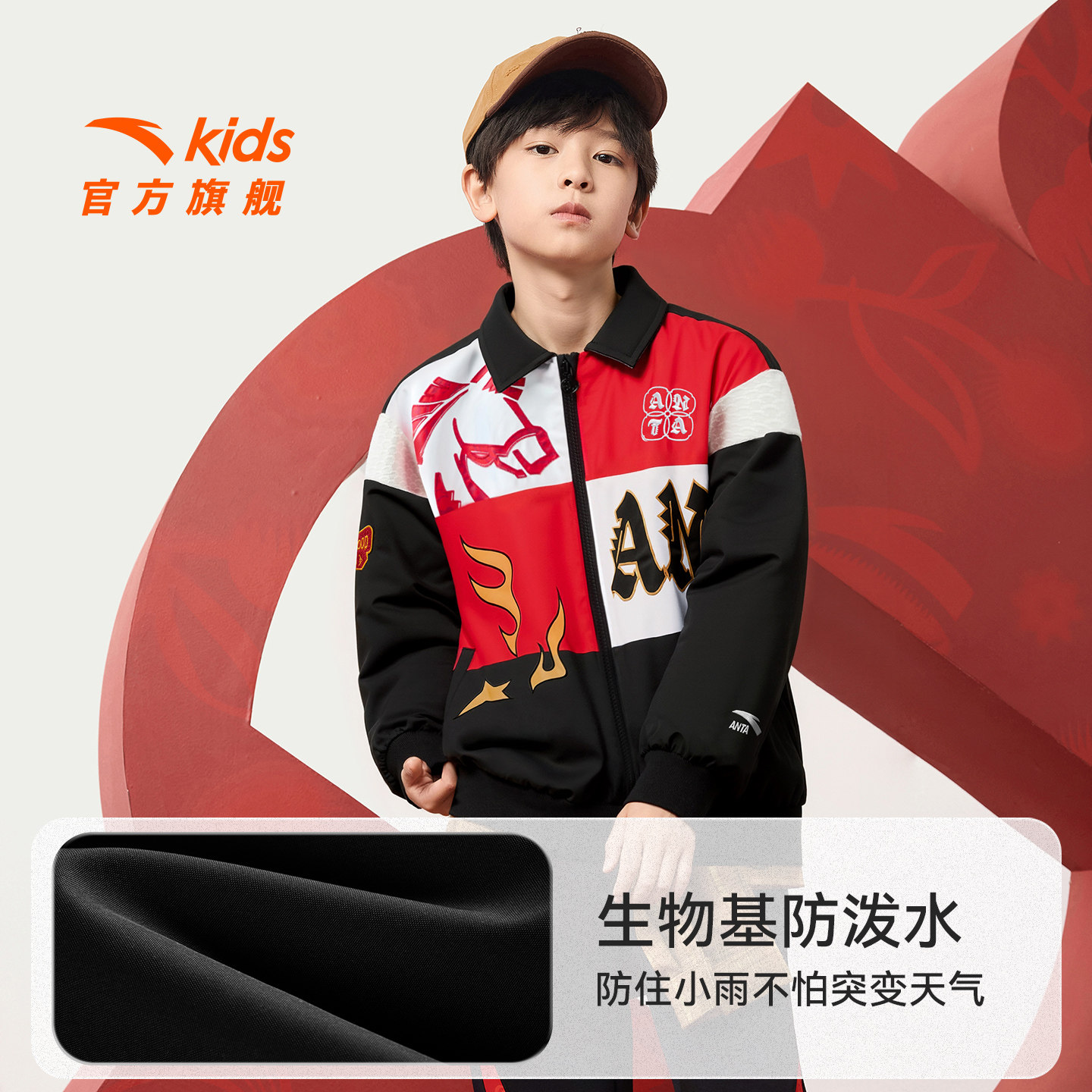 新年款安踏儿童男童摇粒绒运动上衣2026年红色潮酷男孩棒球服外套