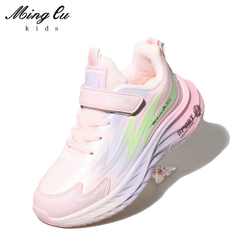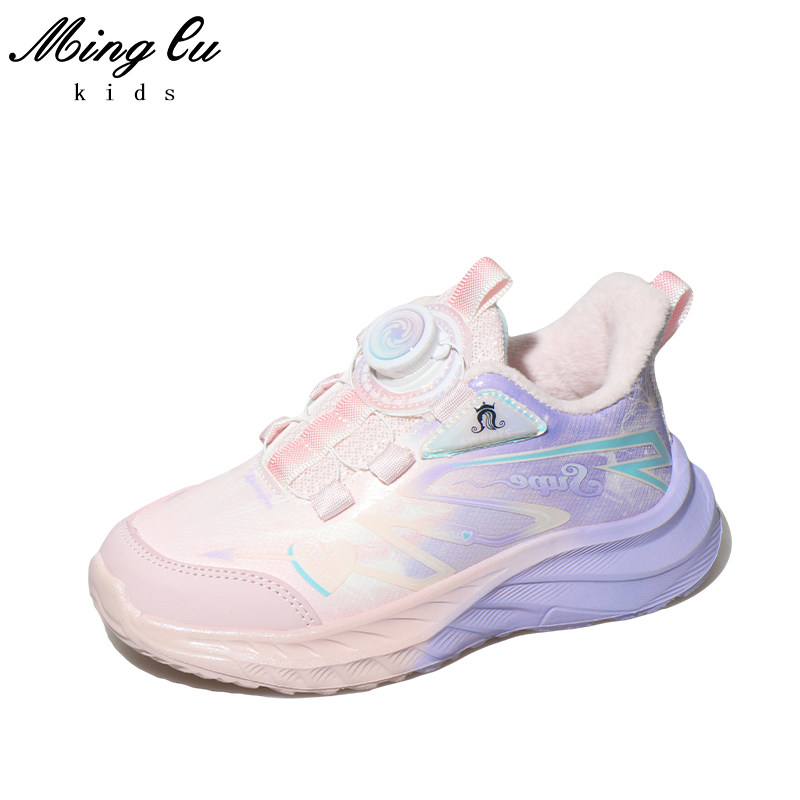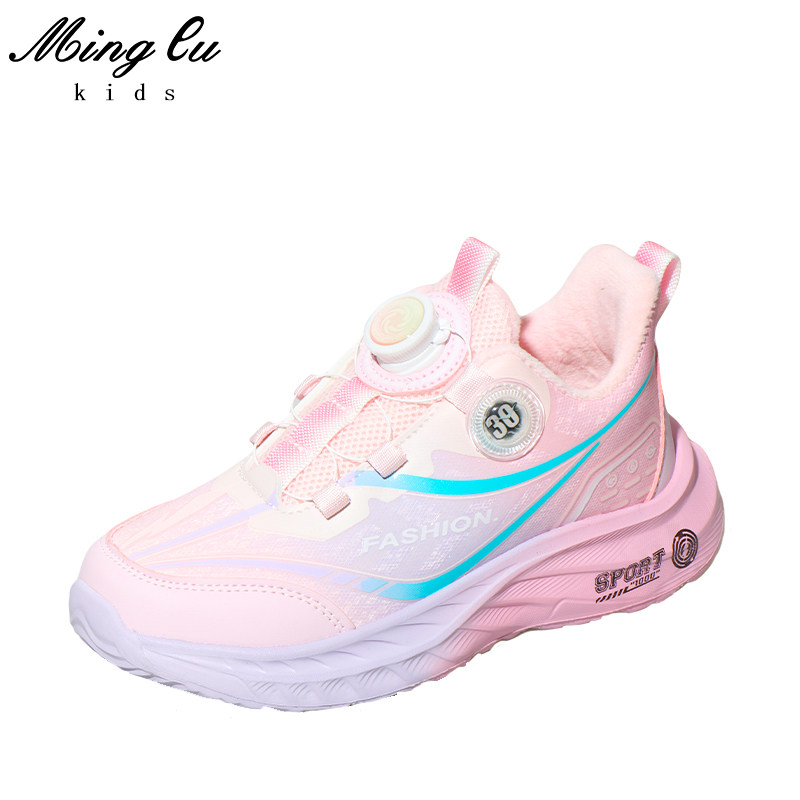 明璐女童冬季加绒运动鞋中大童跑步鞋小学生旋转纽扣加棉鞋子39码