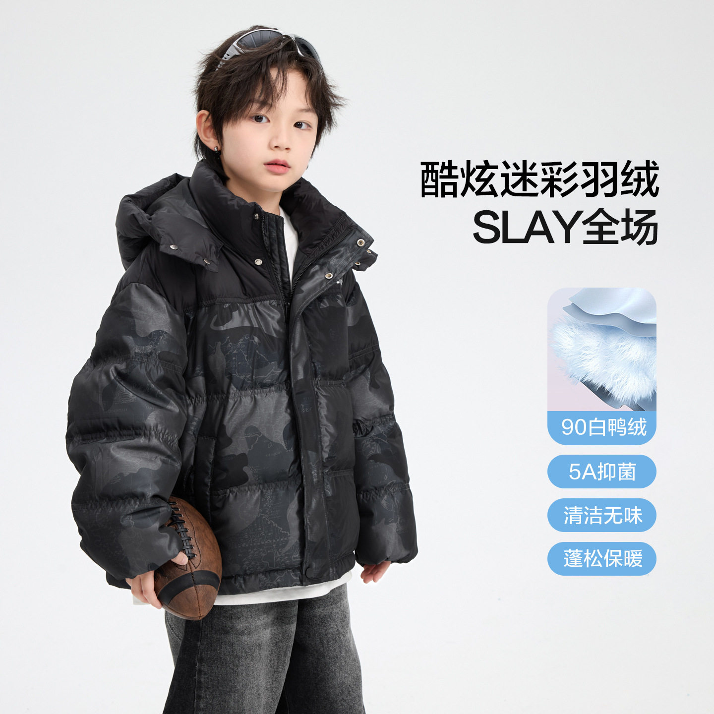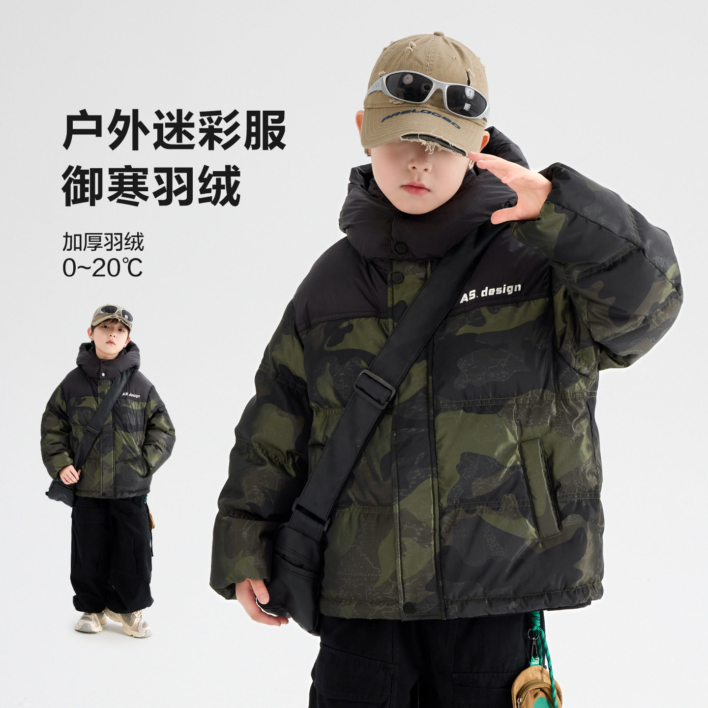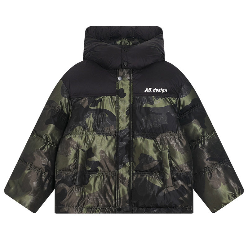 男童迷彩撞色面包羽绒服青少年中大儿童抗寒男孩子免洗三防外套潮