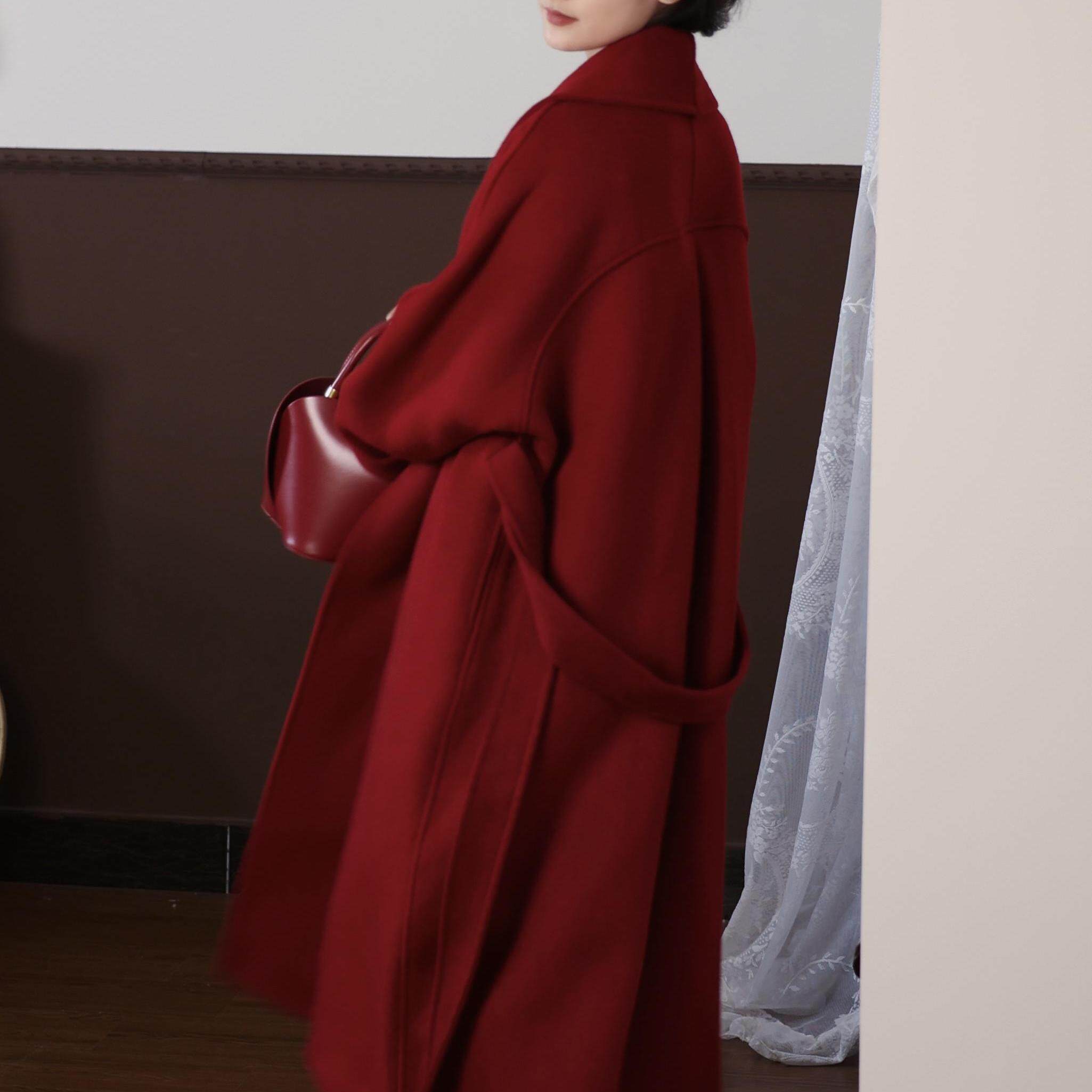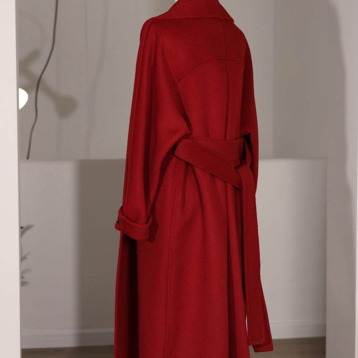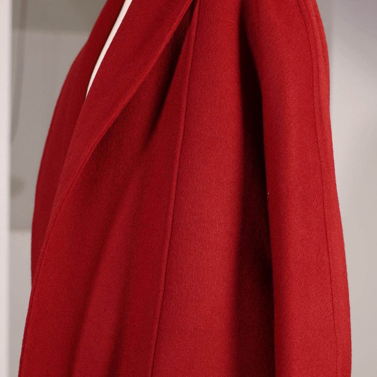 喵吉小个子中长款双面羊毛呢子大衣高级感气质红色毛呢外套女秋冬