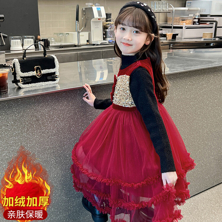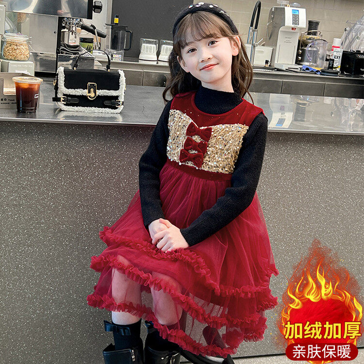 女童裙子2025新款今年流行爆款冬季高级感连衣裙轻奢小众高端红色