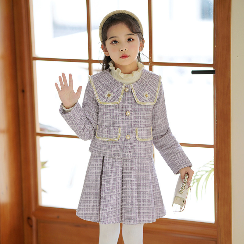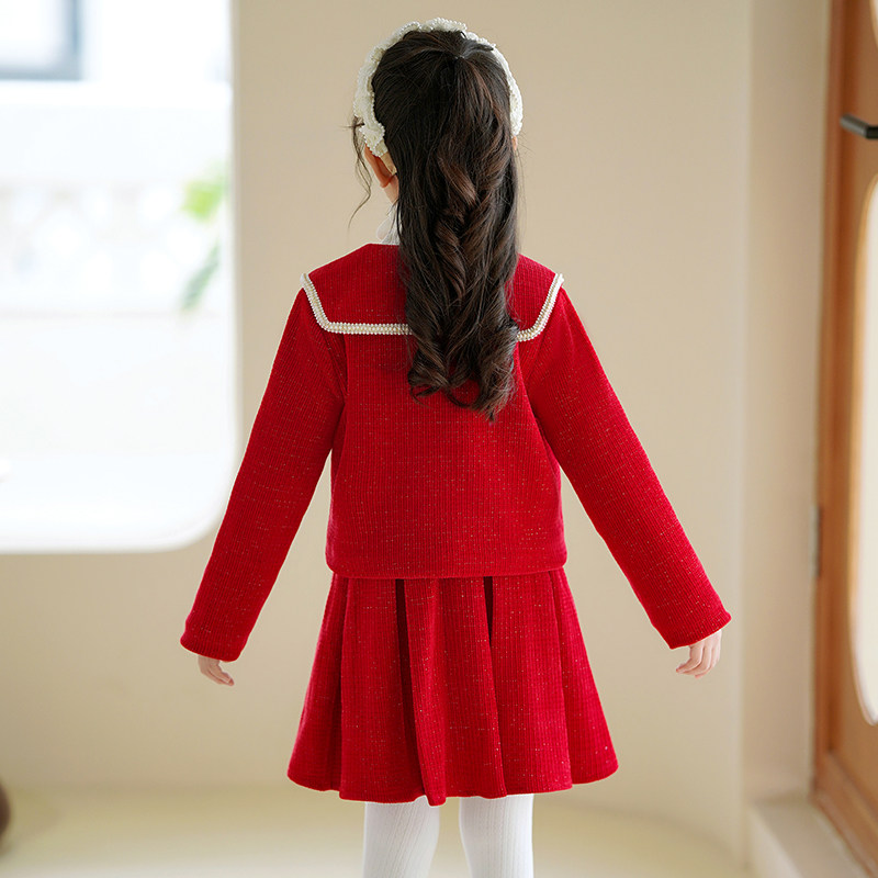 女童小香风裙子套装过年服装秋冬季儿童连衣裙小女孩洋气新年衣服