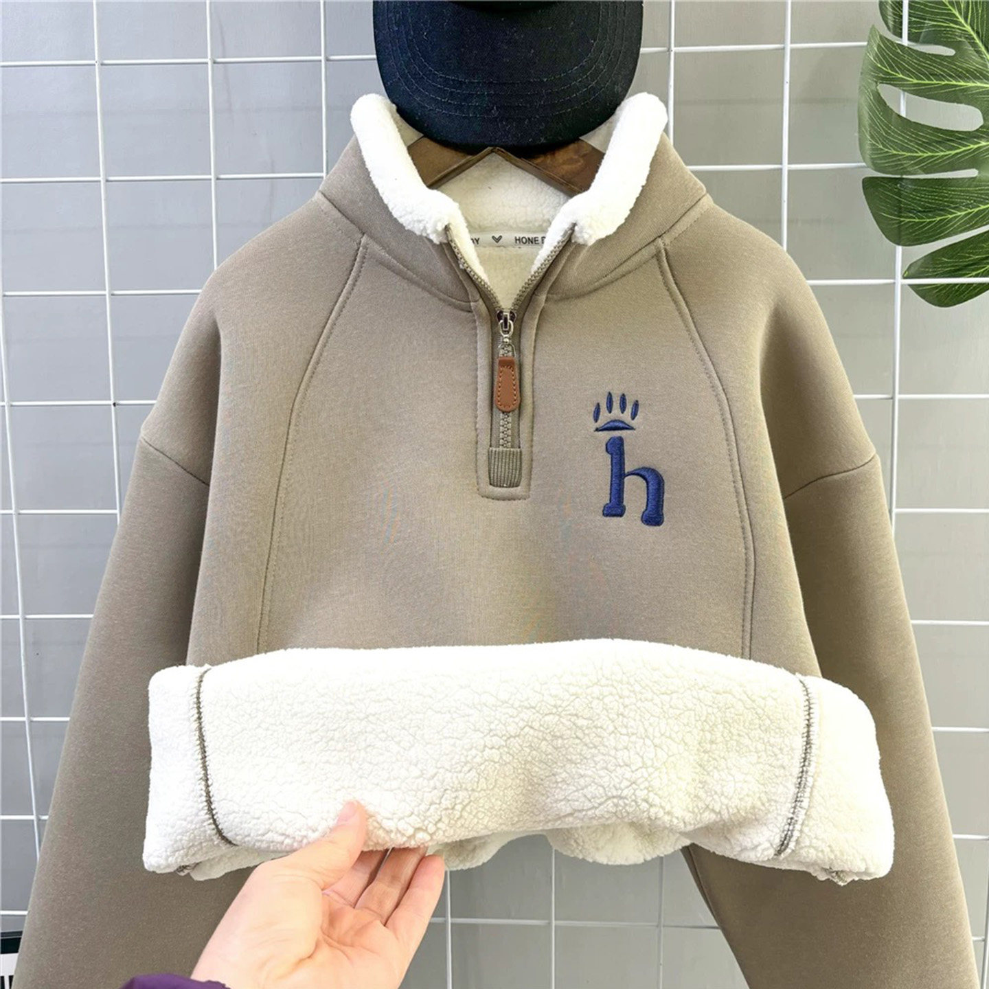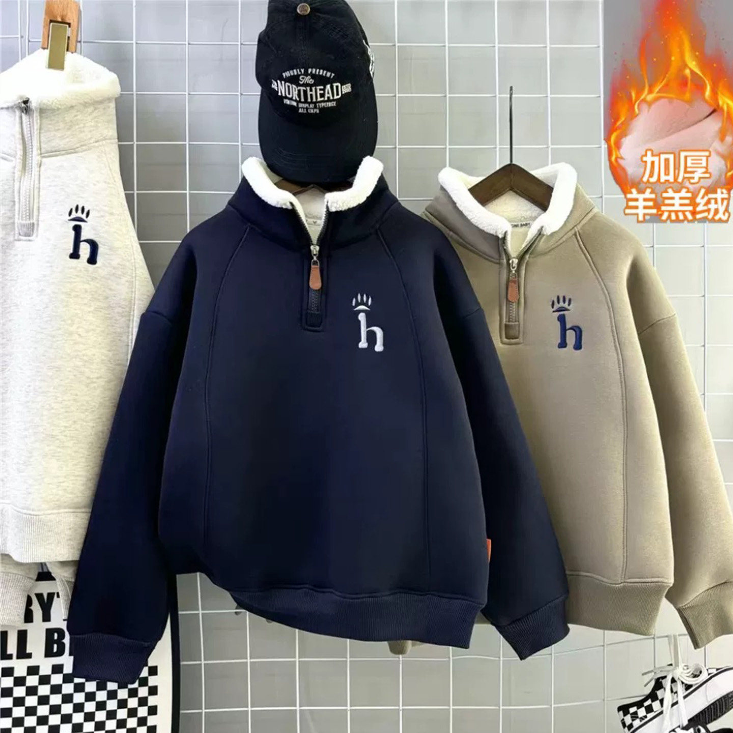 儿童羊驼绒加绒卫衣冬季加厚拉链刺绣男女童上衣中大童女孩半高领