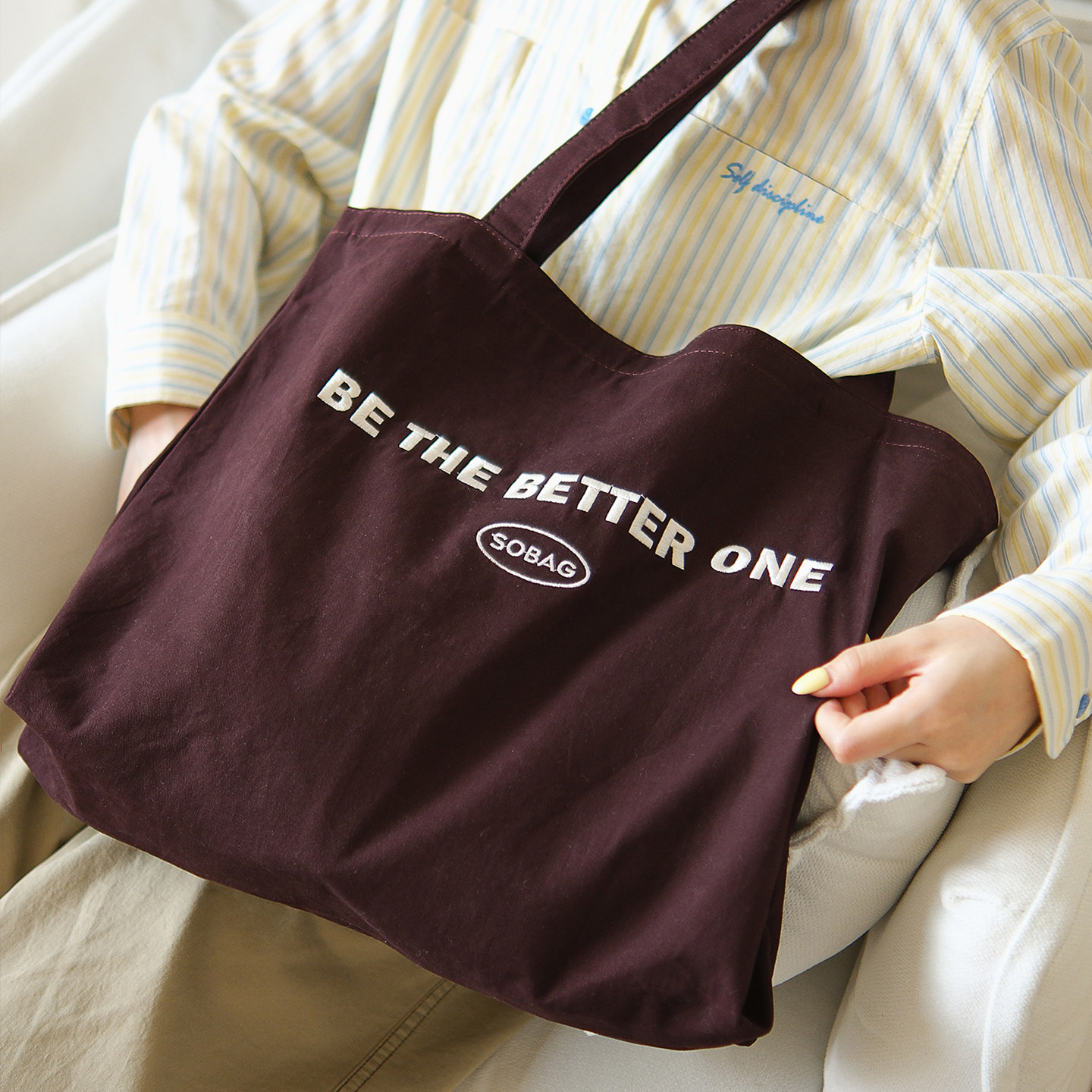 sobag日系简约轻便拉链单肩帆布大包女秋冬文艺大容量通勤托特包