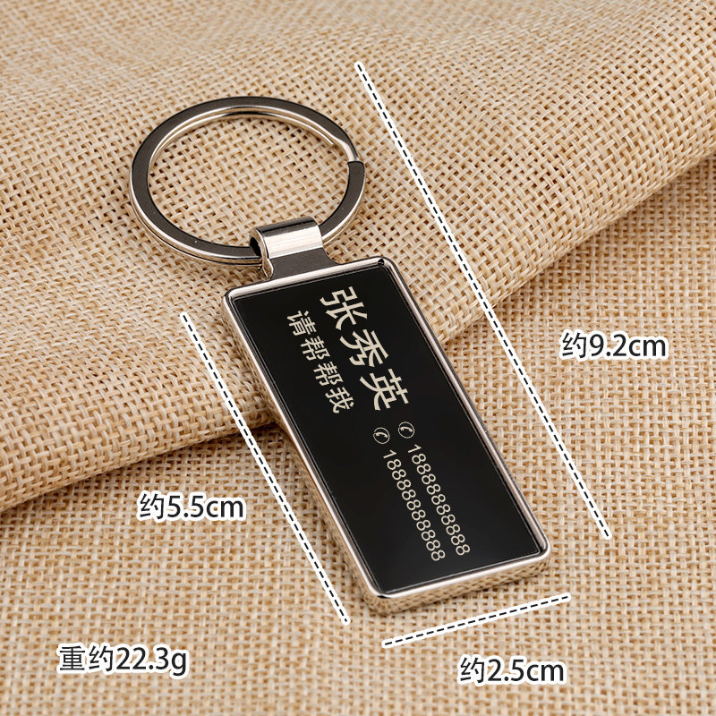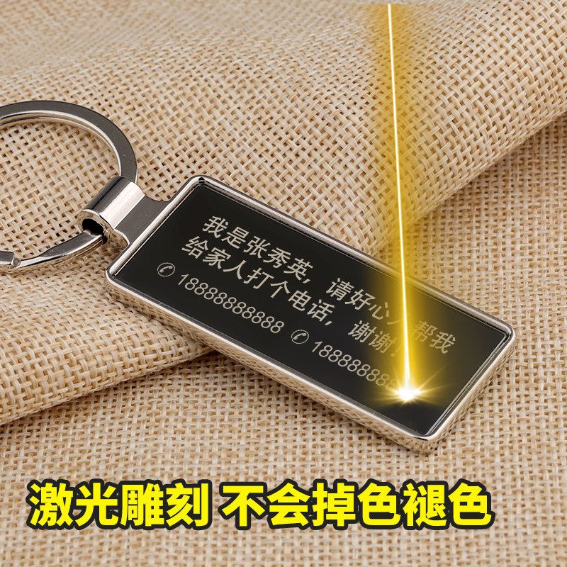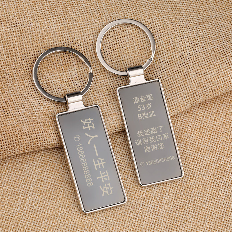 老人防走失牌金属长方形钥匙扣定制刻字电话牌公司logo活动挂件