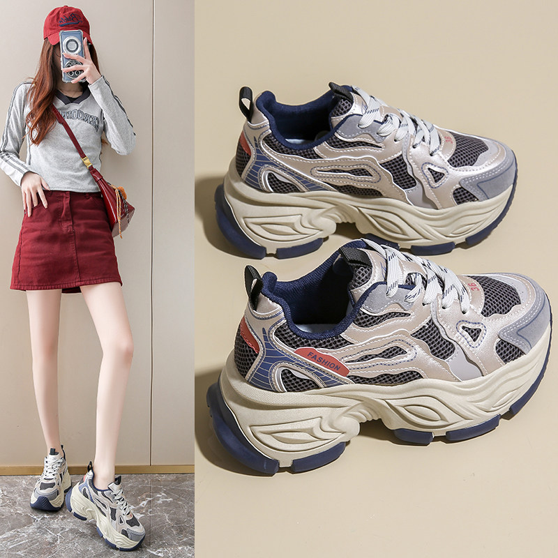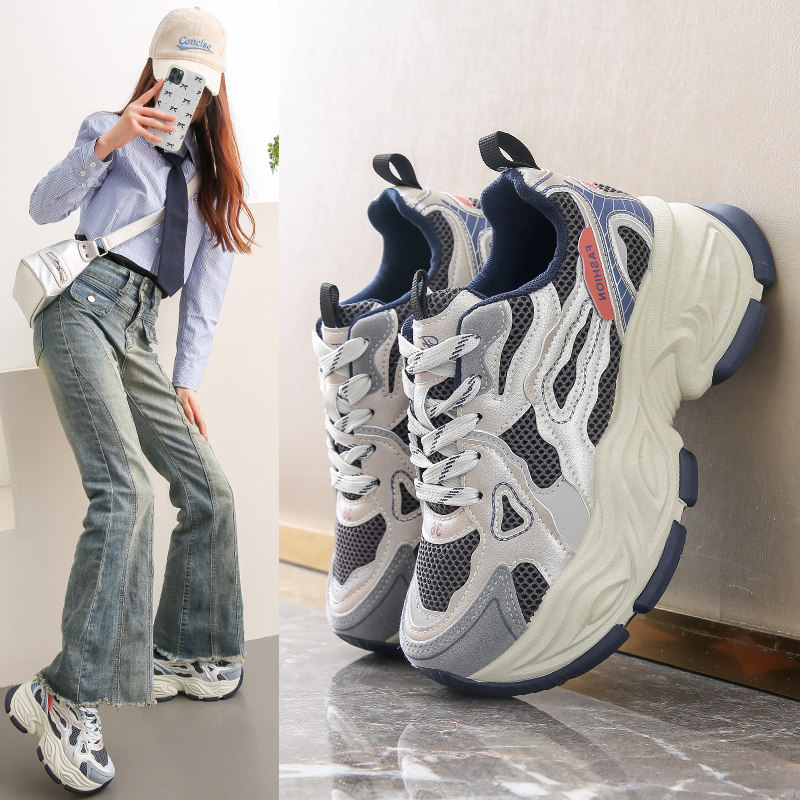 踩屎感小个子增高厚底老爹鞋女款2025春季新款34码网红运动休闲鞋