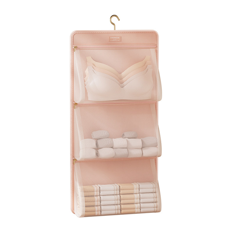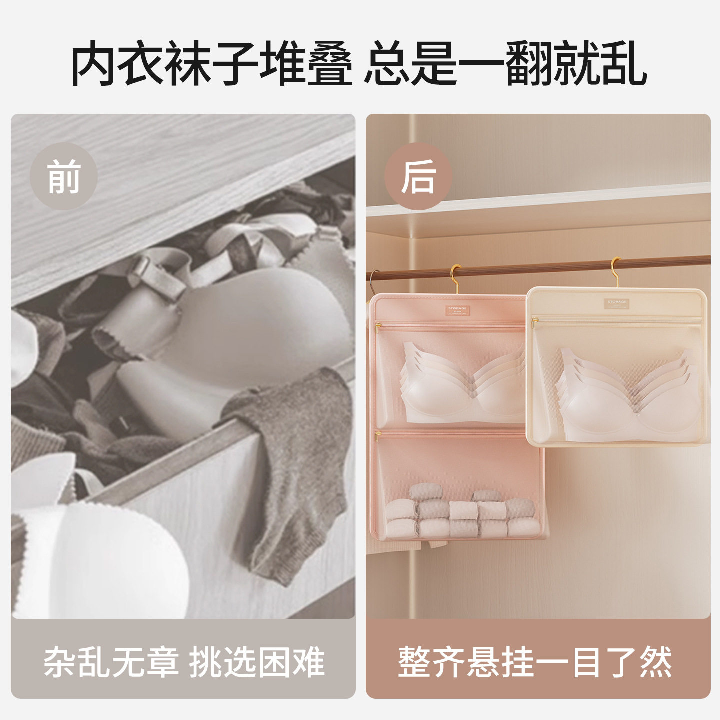 内衣收纳挂袋衣柜悬挂式内裤文胸袜子三合一收纳神器网兜收纳袋