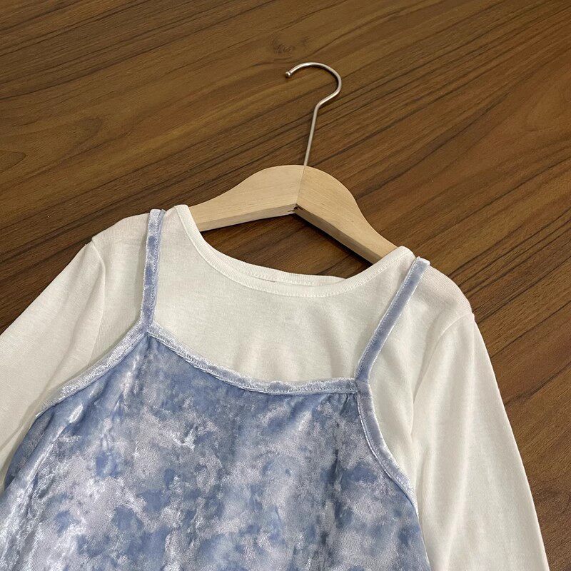 女童长袖连衣裙中大童白色长袖打底吊带两件套春秋100-160cm包邮