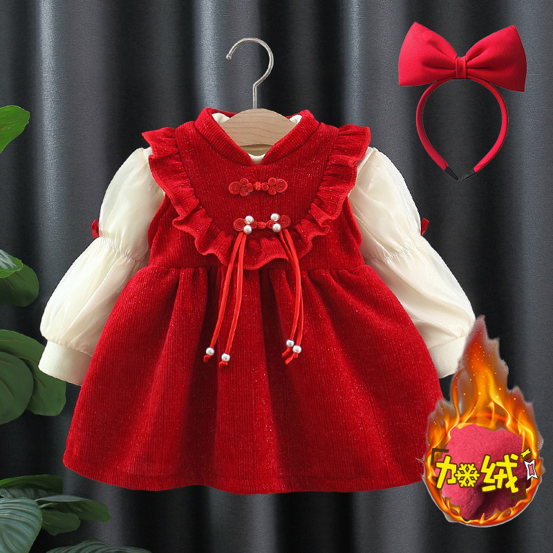 女童连衣裙秋冬装宝宝公主裙子套装婴儿衣服生日周岁礼服红色新年
