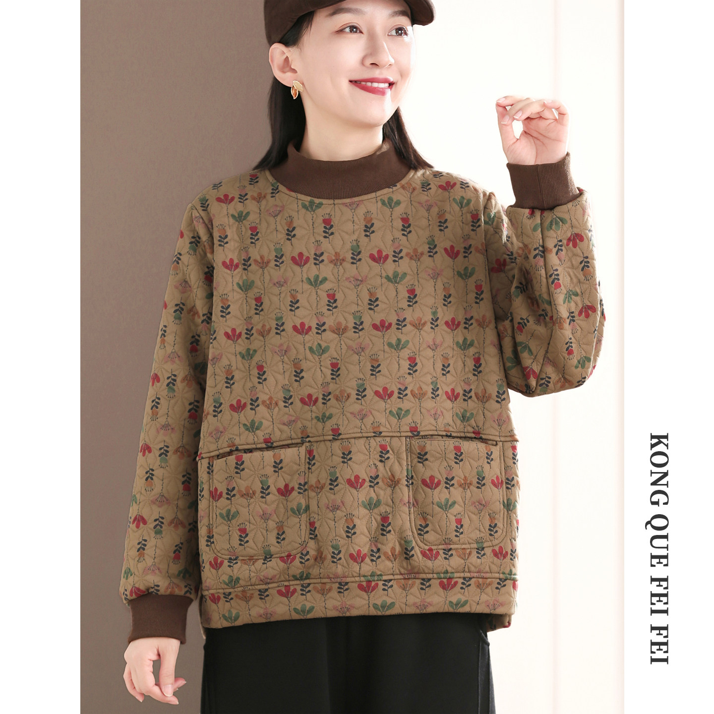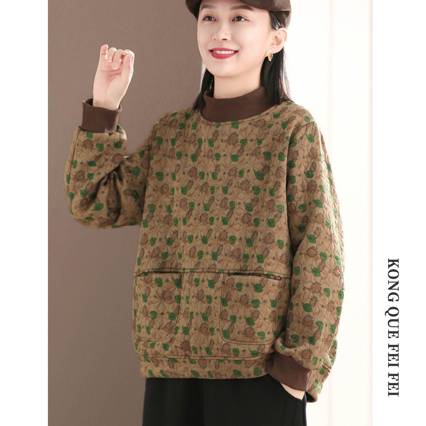 孔雀飞飞冬装韩版大码遮肉印花加厚保暖女士卫衣女款2025新款加绒