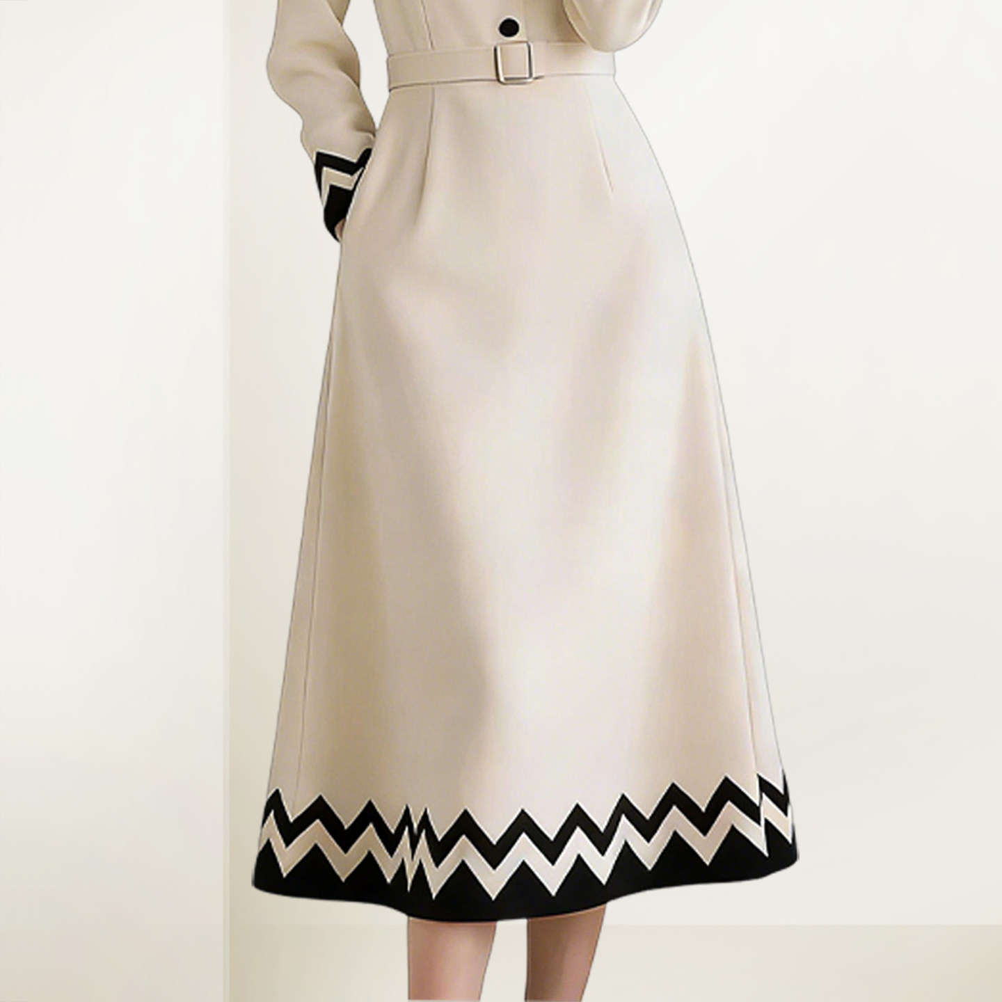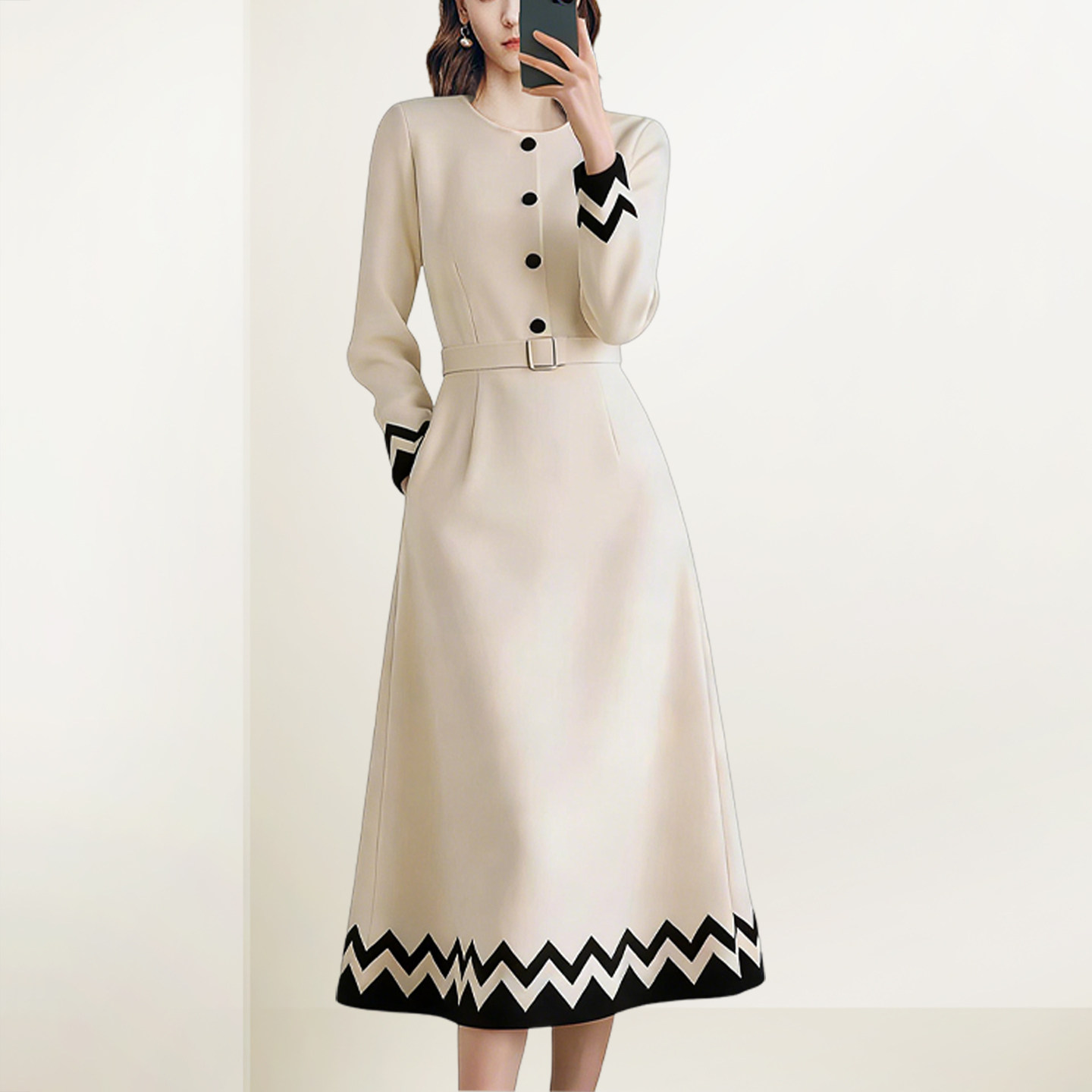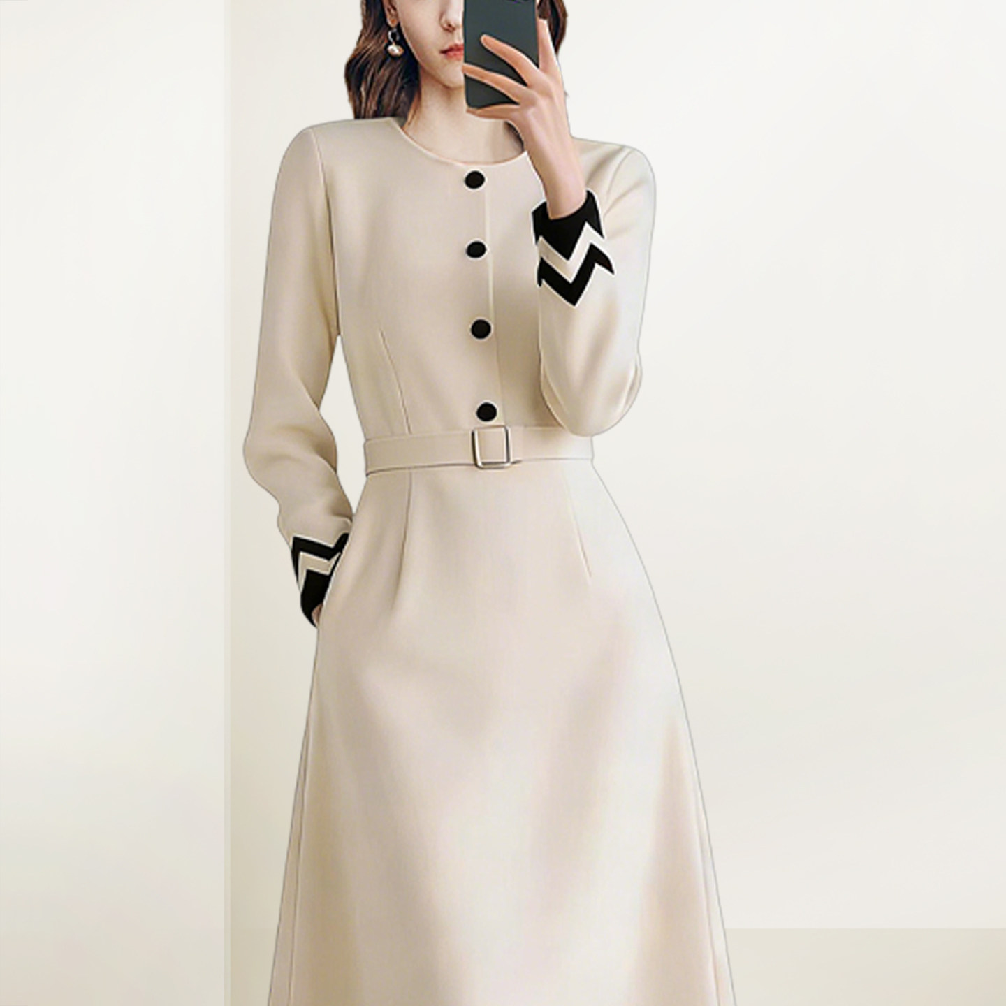 QOOEL法式撞色圆领轻奢高级感连衣裙2026春季新款超好看女士长裙