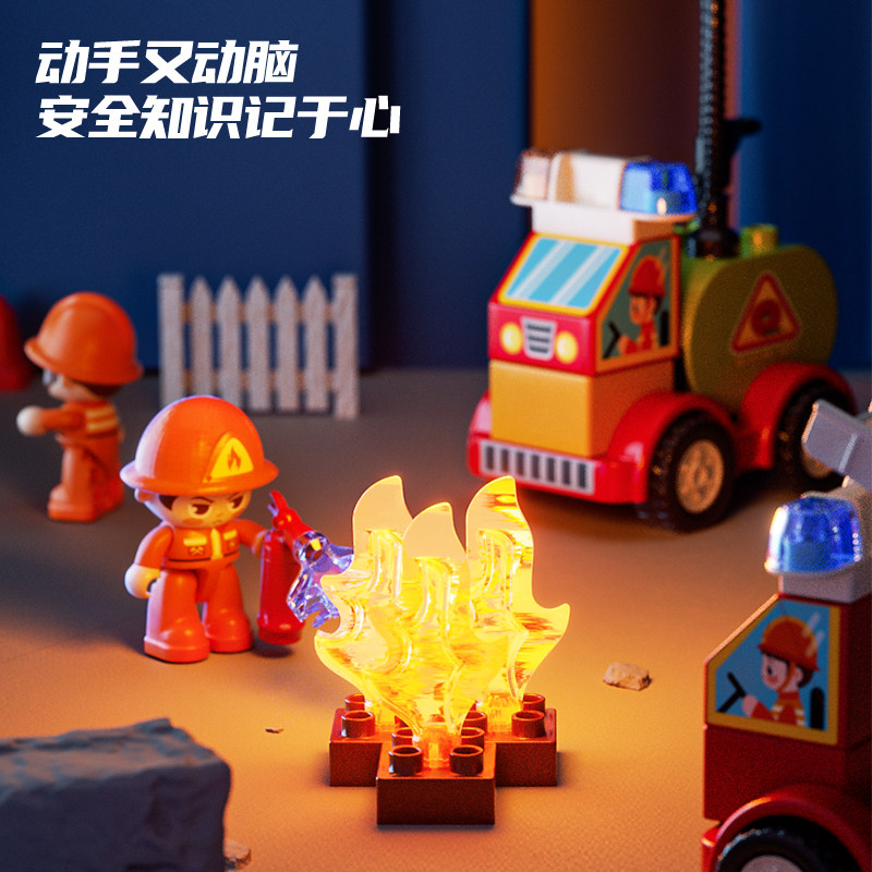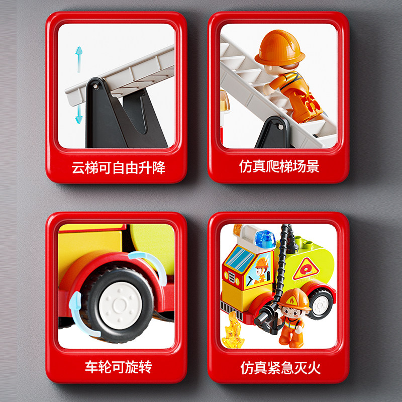 费乐55块大颗粒积木城市消防局汽车组装模型儿童拼装拼搭玩具礼物