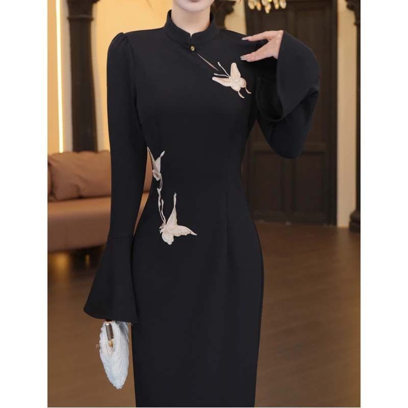 2026春季新款女复古新中式国风长袖连衣裙名媛内搭打底裙HY0121