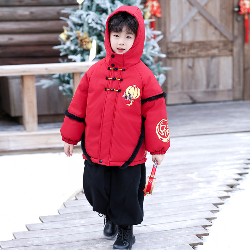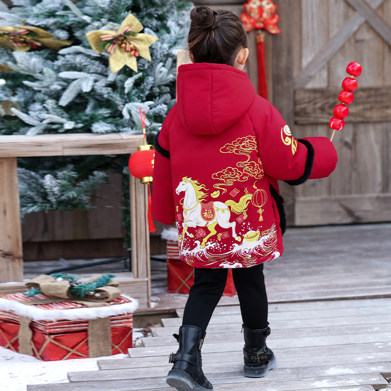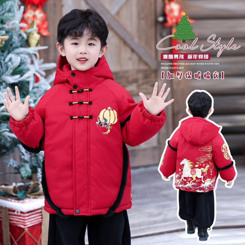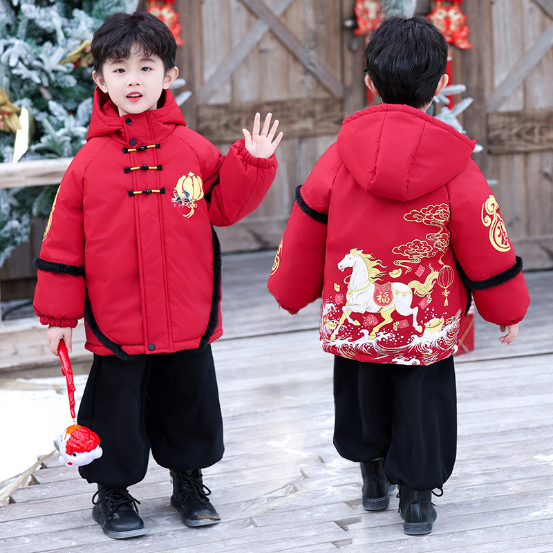 马年男童女童拜年服冬季2026新款儿童棉服中国风红色喜庆新年外套