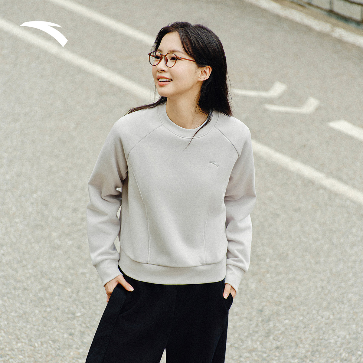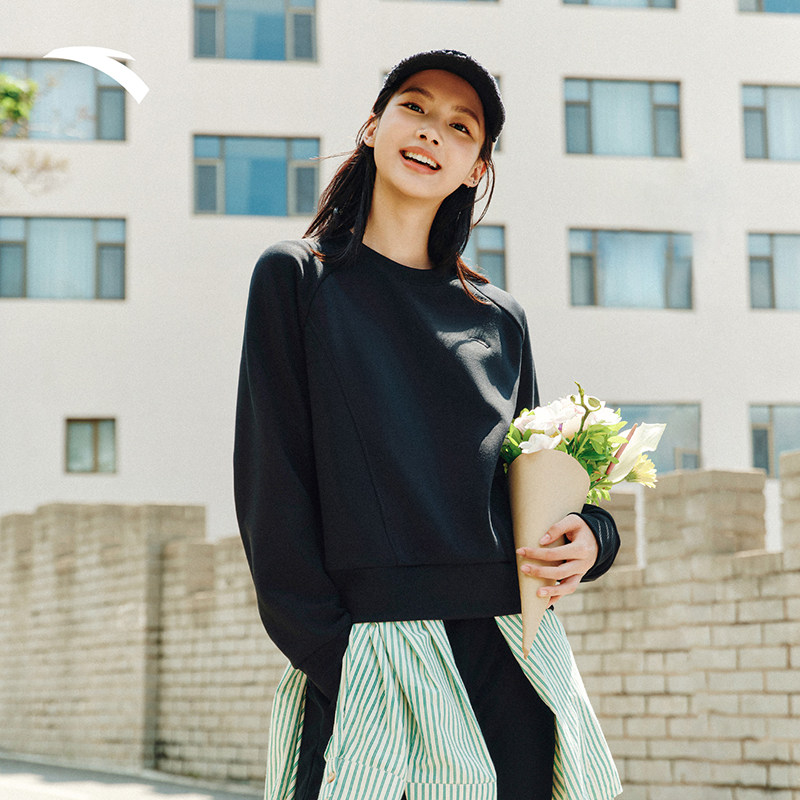 安踏奶芙卫衣女2025新款冬季加绒加厚保暖圆领套头衫长袖运动上衣