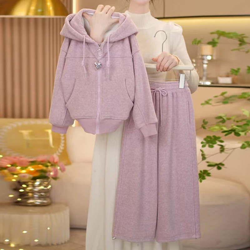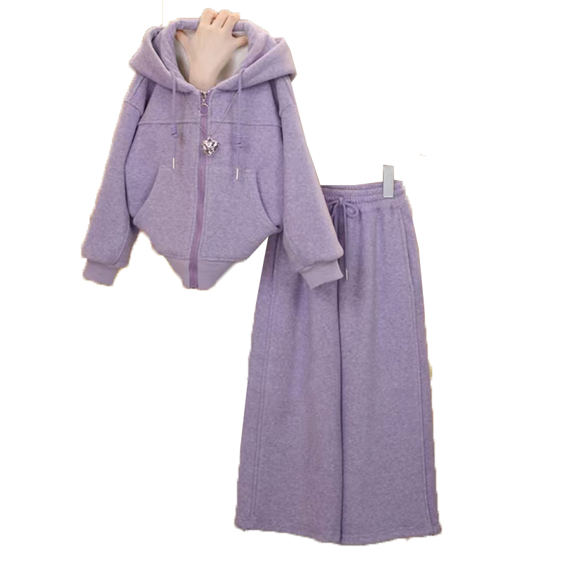 女童冬装套装2026新款洋气儿童时髦加绒加厚连帽休闲装冬季两件套
