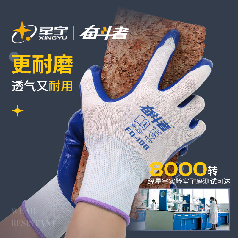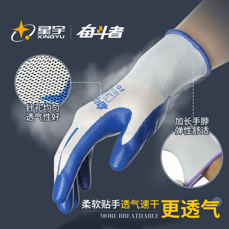 星宇正品手套丁腈橡胶手套劳保工地专用耐磨耐油工作胶皮劳动干活