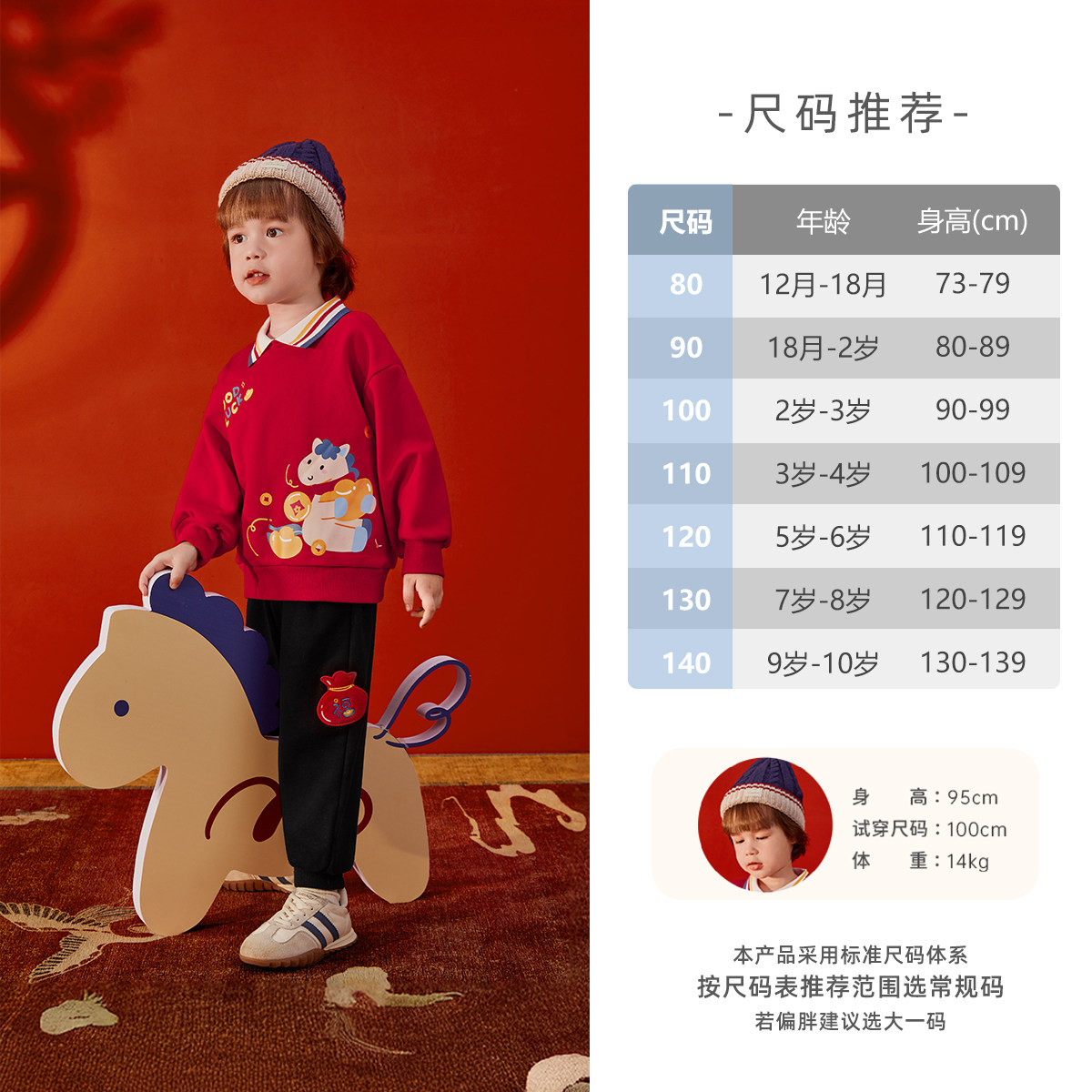 [2026/新年款]男童拜年套装加绒保暖两件套冬装小童红色儿童衣服