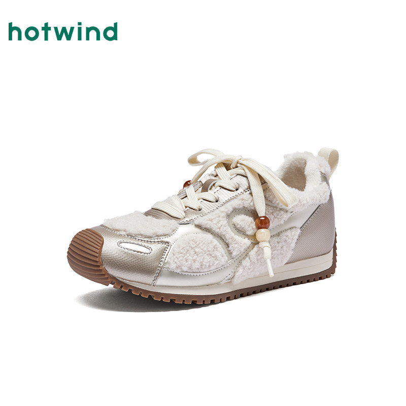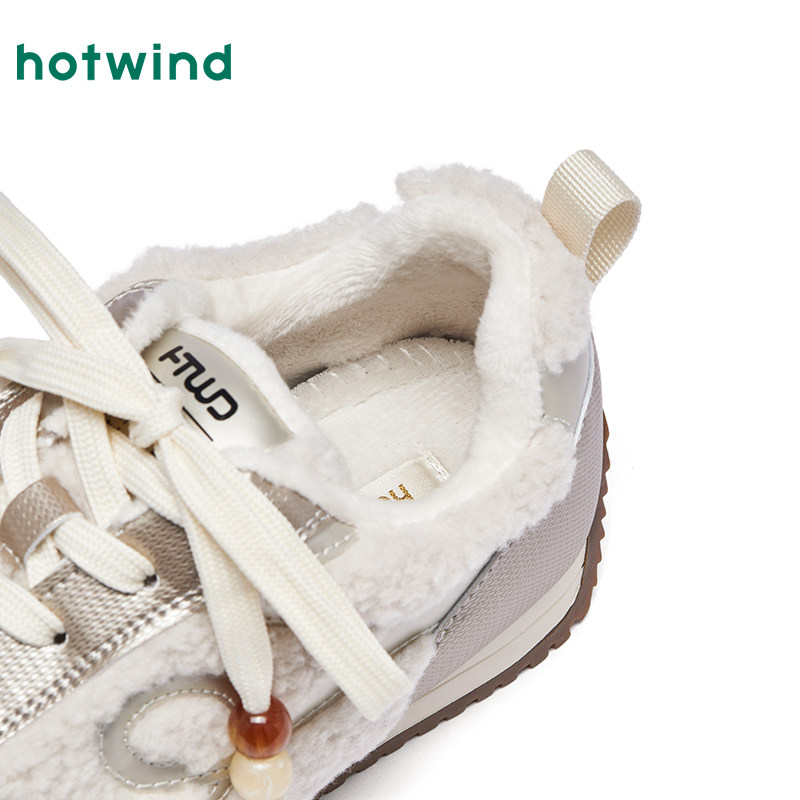 热风运动休闲鞋女款2025年冬季新款百搭毛毛鞋加绒棉鞋轻便女鞋子